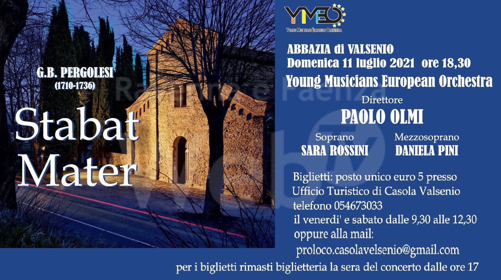 Domenica 11 luglio alle ore 18.30 l’Abbazia di Valsenio, a pochi chilometri da Casola Valsenio, ospiterà per la prima volta un concerto della Young Musicians European Orchestra diretta da Paolo Olmi, con la partecipazione del soprano Sara Rossini e del mezzosoprano Daniela Pini.