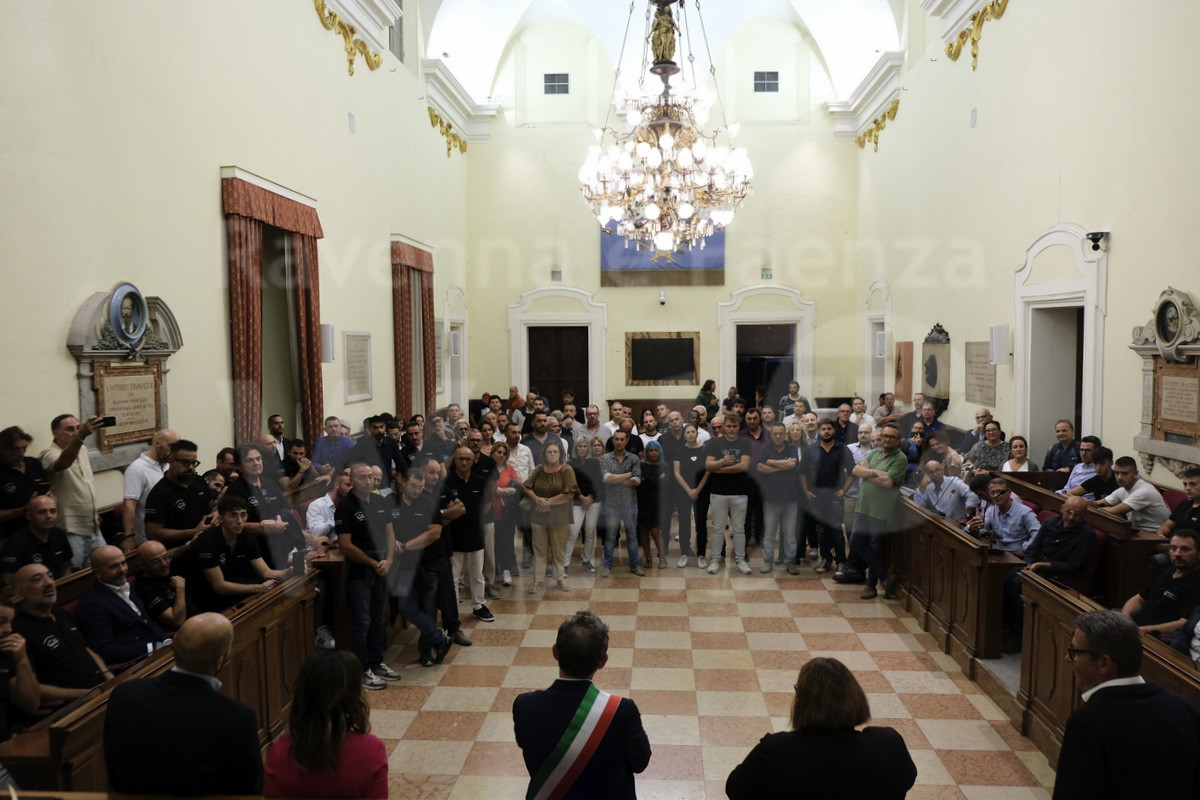Tre i momenti organizzati in diverse location nelle quali l’amministrazione comunale ha voluto dire “Grazie” alle imprese e al mondo dell’associazionismo. Mentre sin dal pomeriggio nell’angolo tra piazza della Libertà e corso Mazzini i Rioni, hanno allestito uno stand gastronomico e i tavoli sistemati di fronte alla fontana monumentale, alle 19 le associazioni di volontariato del territorio, sono state salutate nel Salone dell’Arengo dalla giunta comunale. Alle 20 ci si è spostati nella Sala del Consiglio comunale di Palazzo Manfredi dove protagoniste sono state le aziende che da tutta Italia hanno risposto all’appello degli amministratori per liberare la città da acqua e fango ma anche per chi ha aiutato a vario titolo all’organizzazione logistica degli aiuti.