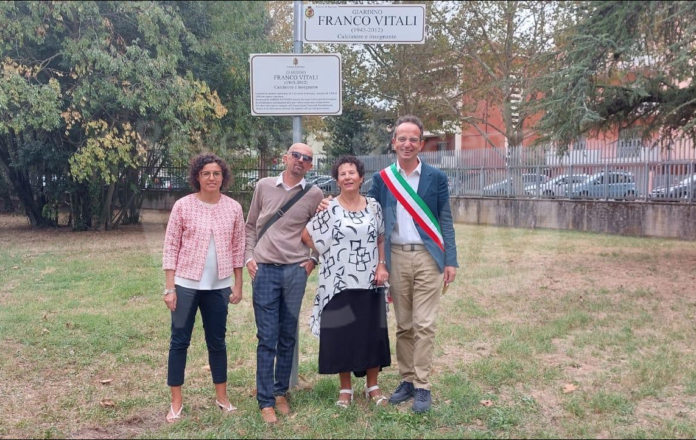 Si è svolta questa mattina la cerimonia di intitolazione del giardino “Franco Vitali”, un’area verde adiacente al Pala Costa, all’ingresso dell’ex ippodromo. La targa è stata scoperta alla presenza del presidente del Consiglio comunale, Massimo Cameliani, di Johannes Donati della Federazione italiana giuoco calcio, del giornalista Franco Gabici e per l’Arcidiocesi di Ravenna-Cervia di don Rosino Gabbiadini.