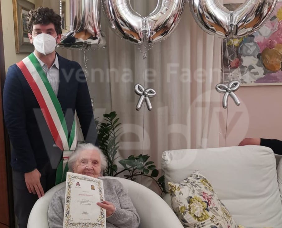 Nel giorno del suo centesimo compleanno ha ricevuto la visita dell’assessore alla Scuola Luigi Pezzi che le ha donato la pergamena di congratulazioni a nome del Comune mentre era festeggiata dai suoi cari.