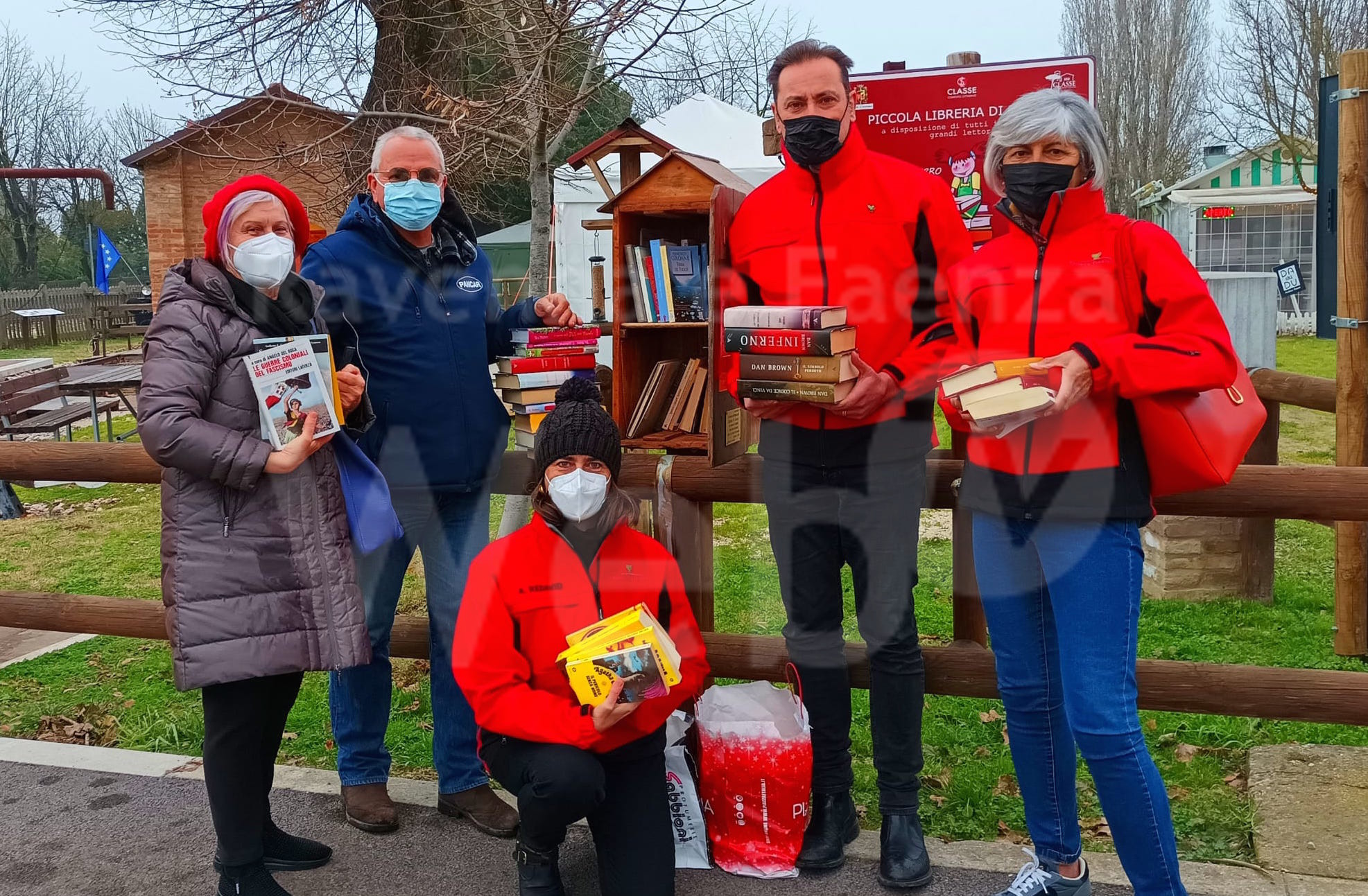 Ad attendere i delegati Marcello Iervolino, Anna Redavid e Manuela Raffoni, presso la piccola libreria di strada di Classe sita nella vecchia pesa vi erano Antonio Puglisi, presidente comitato cittadino di Classe, Fausto Stradaioli, Presidente Classe archeologia e cultura e Graziella Frassineti , moglie di Epifanio Di Lorenzo e referente della piccola libreria di Classe, i quali ringraziano Cuore e Territorio per la donazione di libri di narrativa ponendo le basi per una futura collaborazione vista l’attenzione che riserva C&T alla diffusione letteraria. Questa donazione è stata preceduta dalla consegna alla referente del gruppo di volontari denominato le “magline di Porto Fuori” , Marinella Villani, di diverse riviste avente come oggetto il “ricamo”.