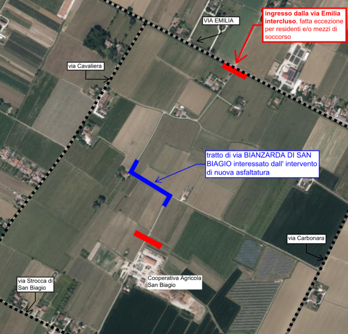 Per consentire i lavori di riasfaltatura, venerdì 4 aprile , dalle ore 7 alle 19, un tratto di via Bianzarda di San Biagio (evidenziato in blu nella planimetria allegata) sarà chiuso al traffico. L’interdizione non riguarderà i residenti e i mezzi di soccorso, ai quali sarà garantito l’accesso. Le modifiche alla viabilità saranno segnalate in prossimità dell’area interessata dai lavori. In caso di condizioni meteorologiche avverse, la data dei lavori potrebbe subire delle modifiche.