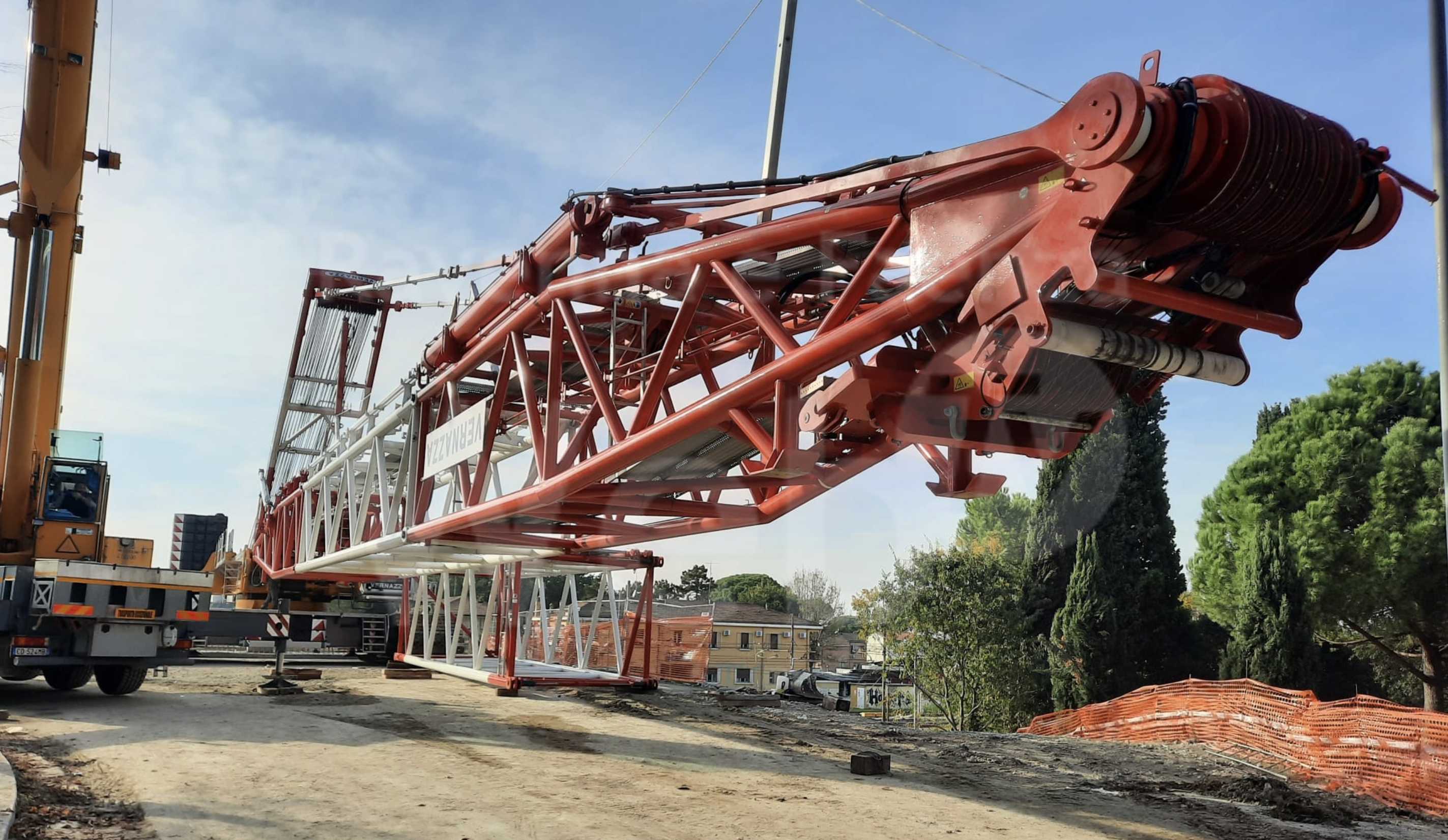 Il posizionamento del nuovo impalcato metallico, già in fase di assemblaggio in un’area limitrofa, avverrà con l’impiego di due gru – con una portata di 630 e 730 tonnellate – posizionate alle due estremità del futuro cavalcaferrovia e la cui installazione è appena stata ultimata.