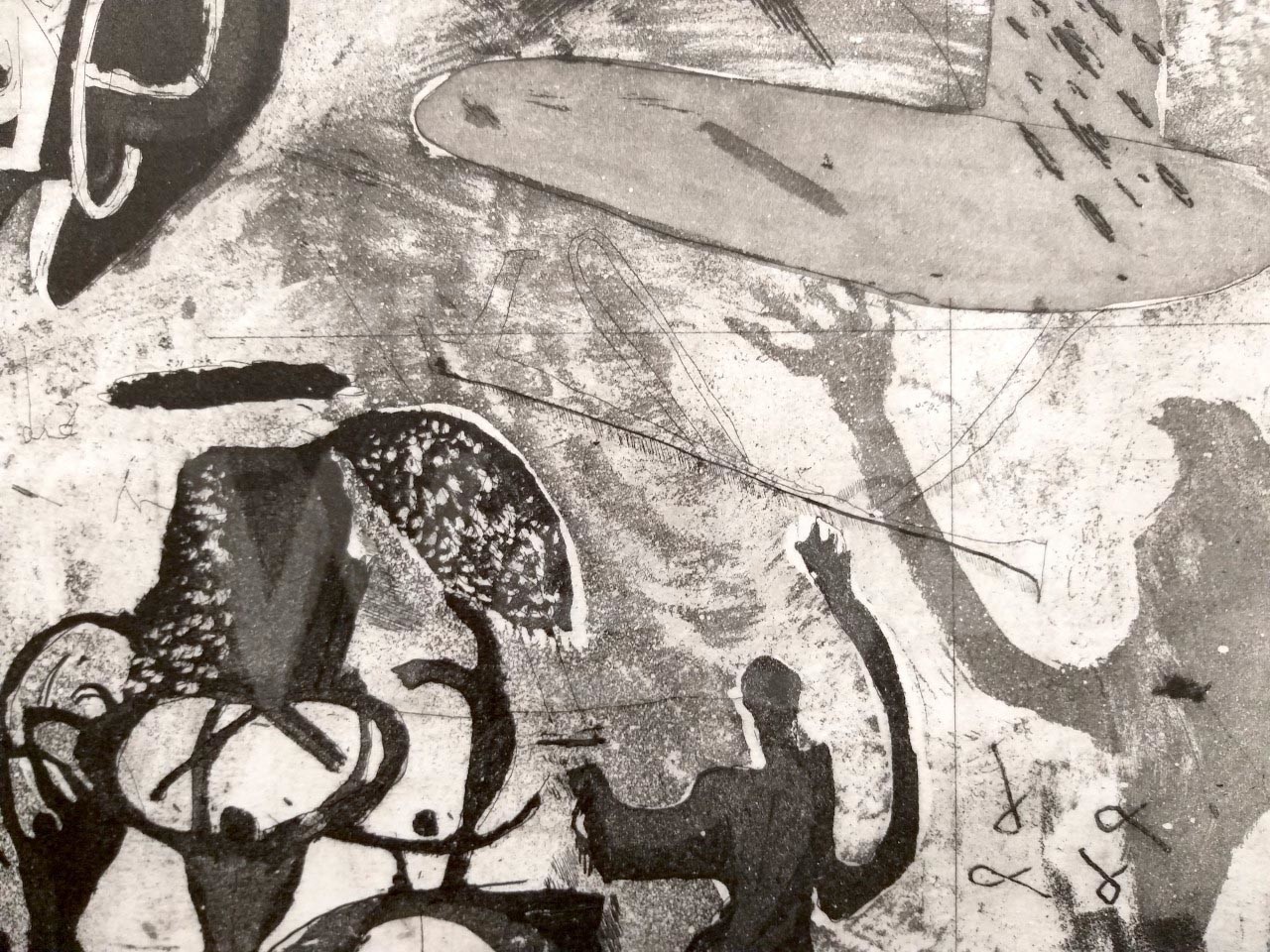 Le stampe calcografiche inedite in mostra«interrogano sulla natura macrocosmica dell’uomo, in cui – osserva l’artista –l’avvicinarsi al vuoto passa attraverso la preghiera e qualsiasi altro tipo di contemplazione sincera anche quando è ingenua o idealizzata».