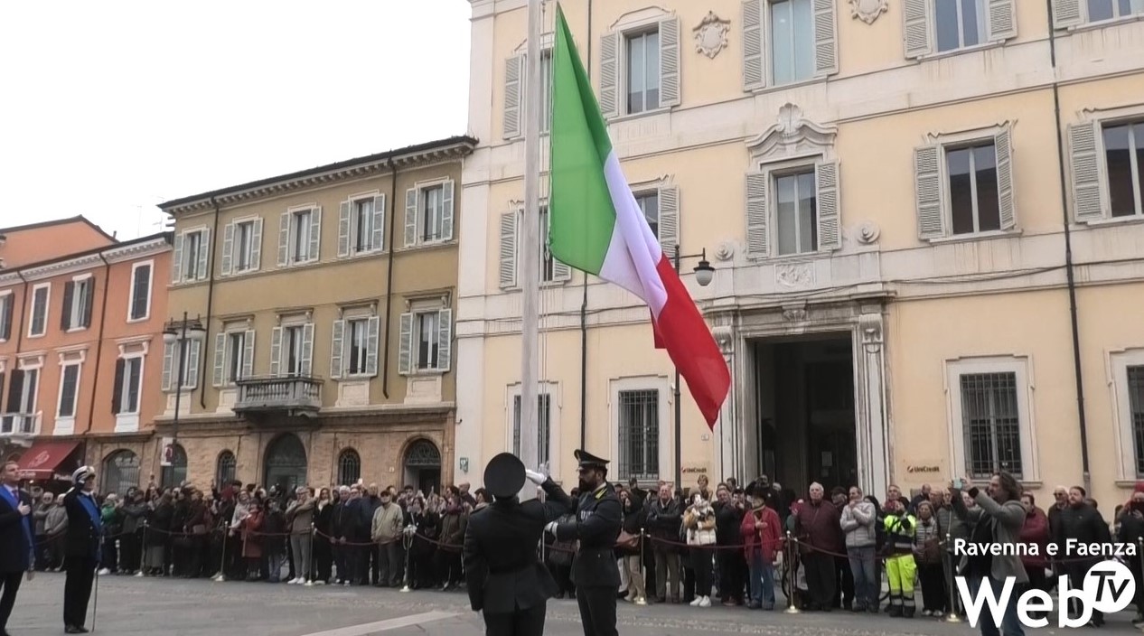 Si è svolta in piazza del Popolo la cerimonia dell’alzabandiera in occasione della Giornata dell’Unità Nazionale e delle Forze Armate. Ad accompagnare le celebrazioni del 4 novembre sono stati la banda cittadina e gli alunni della scuola Don Minzoni di Ravenna, intonando l’inno nazionale
