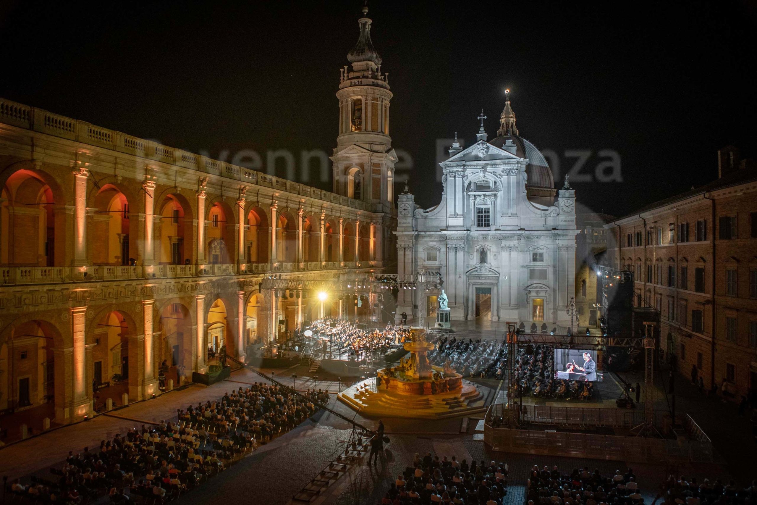 Alla guida della sua Orchestra Cherubini e di un Coro di artisti italiani e ucraini (ai Cori Cherubini e Cremona Antiqua, preparati da Antonio Greco, si è unito il Coro del Teatro dell’Opera Nazionale d’Ucraina “Taras Shevchenko” diretto da Bogdan Plish), Riccardo Muti si è fatto portatore ancora una volta del messaggio universale di pace e di speranza che solo la musica può esprimere. “La pandemia – ha sottolineato infatti il maestro – ci ha resi ancora più consapevoli della nostra fragilità, dell’universalità dell’esperienza del dolore. Ma la sofferenza non è il solo linguaggio che non conosce confini. La musica supera tutte le diversità di cultura, lingua e religione e ancora una volta può farsi ambasciatrice di pace e solidarietà”. Un messaggio che passa attraverso i quadri solenni eppure di trasparente semplicità del Magnificat di Vivaldi affidati alle voci di Arianna Vendittelli e Margherita Sala, eppoi nella tensione che pervade ogni nota dei Pezzi Sacri di Verdi, Stabat Mater e Te Deum. E ancora nella lievità danzante del Concerto per corno K412 di Mozart, esaltata dal talento di un solista come Felix Klieser, miracolo della tenacia e della volontà (privo delle braccia si è conquistato il successo internazionale suonando con gli arti inferiori). Ma che si condensa anche nelle voci evocative del Coro del Teatro nazionale di Kiev (che dopo aver trovato per alcuni mesi rifugio di vita e artistico a Ravenna è rientrato in Ucraina nei giorni scorsi) come in quelle esili e toccanti di una madre e una figlia imploranti la salvezza nella Preghiera alla Beata Vergine della compositrice ucraina Hanna Havrylec’, scomparsa a febbraio. Poi anche in quella più cruda e acuta di un cantore della tradizione basca come Beñat Achiary. Un mosaico di voci e culture che si intrecciano per sfociare in quel miracolo che è l’Ave Verum di Mozart, che i bambini del coro Vocincanto intonano dal sagrato della basilica di Loreto in un momento di raccoglimento e di commozione vera, per tutti.