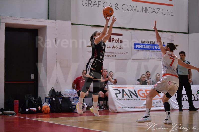 Tripla di Galbiati da una parte, risponde Schwienbacher dall’altra: dopo 2′ di gioco Faenza è ancora avanti di 9 lunghezze (48-57). La conclusione da oltre l’arco di Kantzy fa saltare in piedi tutto il pubblico di fede romagnola presente al PalaVerde, perchè vale il +12 bianconero e costringe Broni al timeout (48-60). E’ Giulia Manzotti a prendersi la scena nella fase centrale del quarto periodo: l’ex Selargius sale a quota 12 punti personali e permette alle compagne di entrare negli ultimi 4′ con ancora la doppia cifra di vantaggio (55-65). Westerik con la conclusione dall’angolo riaccorcia le distanze e a 55″ dal termine Broni si ritrova sul -7 (58-65). E’ la tripla di Policari che mette definitivamente in ghiaccio il risultato, dando il via alla festa romagnola: Faenza vince 60-68 e conquista la salvezza.
