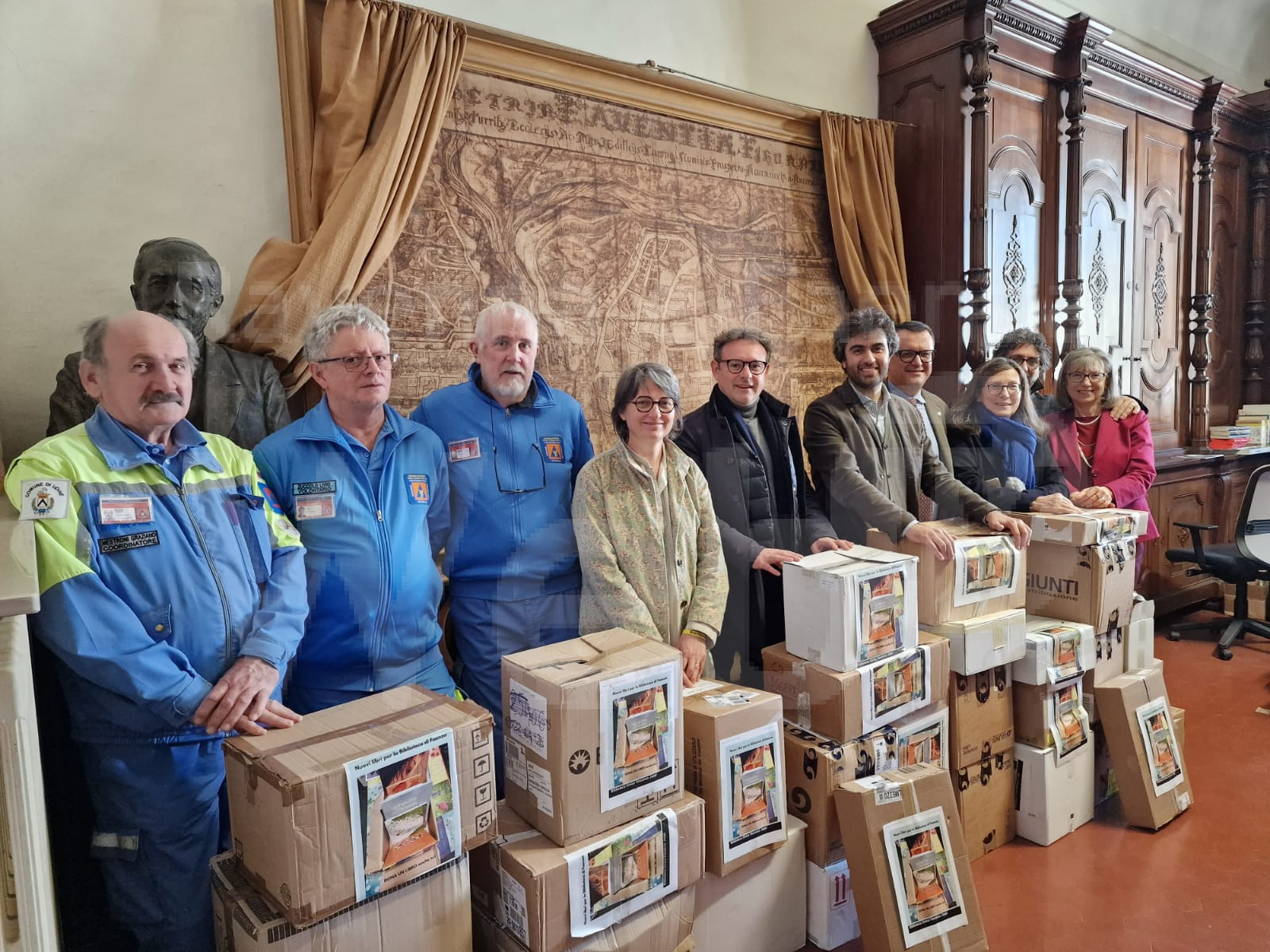 La consegna è stata fatta dagli amministratori e dal personale della Protezione civile del Comune di Udine, Federico Pirone, Andrea Zini e Laura Piani, alla presenza del sindaco di Faenza, Massimo Isola e della direttrice della Manfrediana, Daniela Simonini.