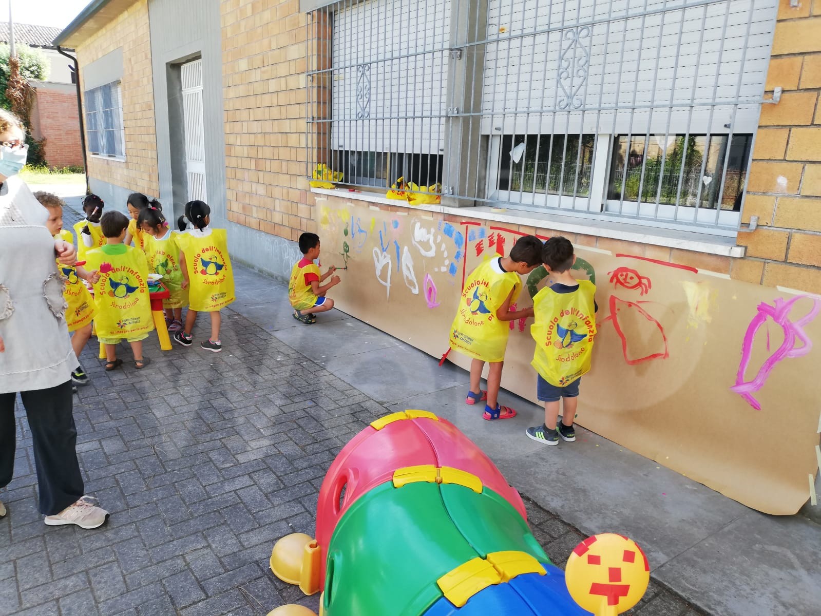 “Buon pomeriggio. C’è stata la festa scolastica dei bimbi. La maestra e la maestra di sostegno ci hanno lasciato una foto ricordo con dietro una messaggio scritto.