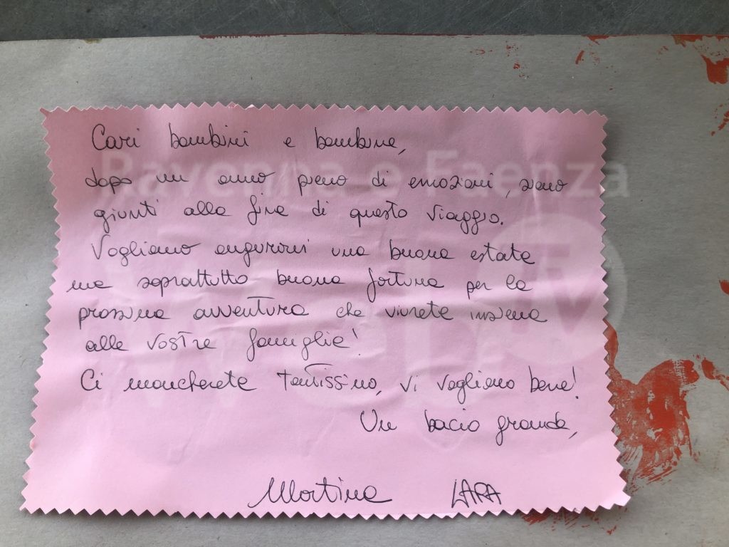 Sono parole forti, soprattutto quando la maestra scrive ‘buona fortuna per la prossima avventura che vivrete insieme alle vostre famiglie’.Queste famiglie ad oggi non hanno certezze, non sanno come andrà a finire ed è stato veramente un peccato non poter dire a loro che ce l’abbiamo fatta. Chissà cosa succederà! Saranno dispersi in altri paesi o potranno tutti ritrovarsi a scuola nel loro paese?”. Elisa Floris
