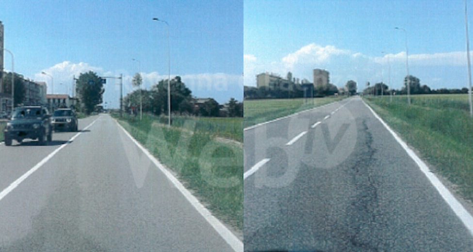 Va anche detto che il tratto extraurbano di via Romea Sud è composto da un’unica carreggiata, larga poco più di sei metri, con una corsia di marcia per entrambe le direzioni, divise da una semplice striscia di vernice, con una banchina asfaltata di 10-20 centimetri praticamente inesistente ed un manto stradale adiacente a fossati di non trascurabile profondità, che mostra crepe e deformazioni dell’asfalto. Intorno a Ravenna esistono strade extraurbane con due corsia per ciascuna delle due direzioni di marcia, separate da un new jersey, in cui il limite massimo di velocità è di 50 km/h. Incomprensibile dunque come, nel tratto extraurbano di via Romea Sud che ne precede l’ingresso in città, sia mantenuto, senza alcuna protezione e in condizioni assai più fragili, il limite dei 90.