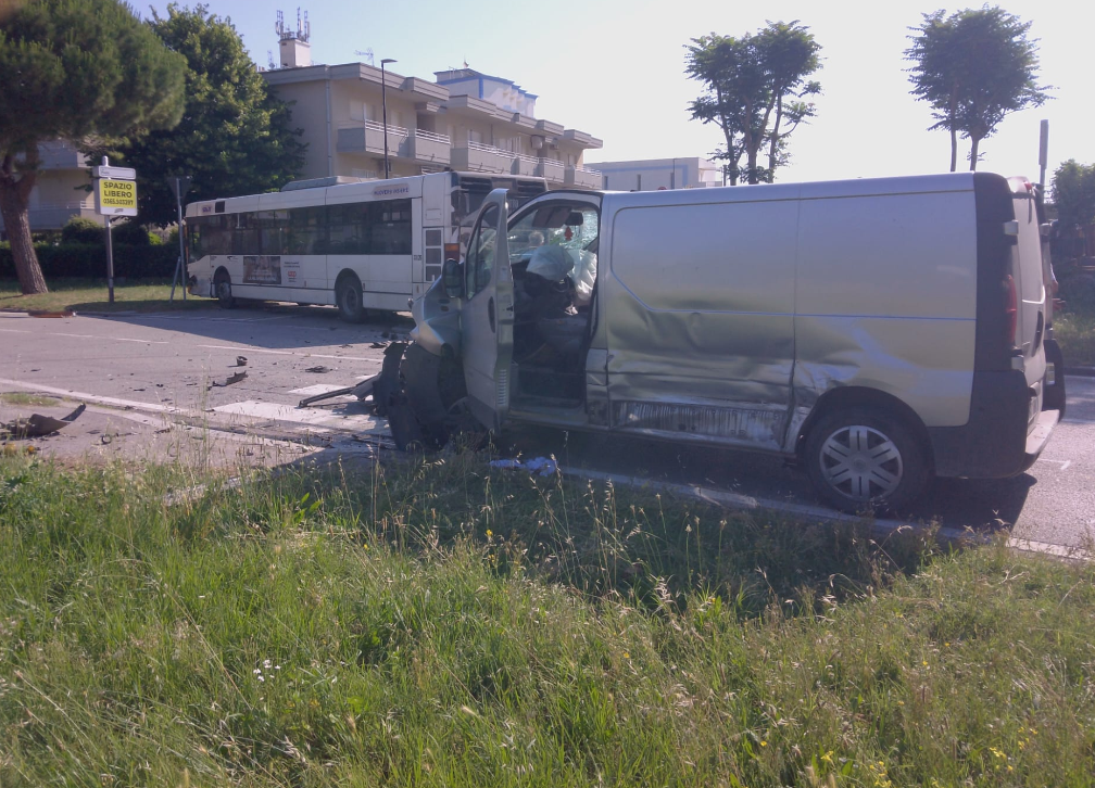 Una Dacia, guidata da una donna sessantenne, si è immessa su viale Byron da via Forlì, in direzione di Milano Marittima, andando però a scontrarsi con un furgone che stava transitando sul viale. Alla guida un uomo sui 50 anni. Dopo l’impatto, molto violento, il furgone è andato in testacoda e, ormai fuori controllo, è andato a scontrarsi contro un autobus sulla corsia opposta. Il mezzo di Start Romagna si stava dirigendo verso Lido di Classe.