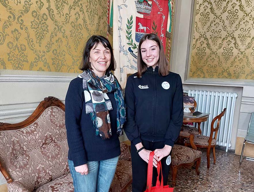 La giovane atleta, accompagnata dai genitori e dalla sorella Matilde, ha incontrato la sindaca Eleonora Proni e la vice sindaca Ada Sangiorgi che si sono complimentate con lei a nome dell’intera Bagnacavallo. La sindaca ha sottolineato l’importanza per la città, tradizionalmente legata allo sport d’eccellenza, di vedersi rappresentata in questo ambito anche da atlete e atleti che praticano discipline che non sempre sono sotto i riflettori e richiedono molti sacrifici senza in cambio particolare popolarità.