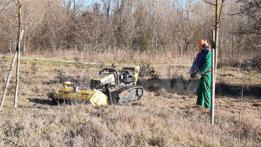 In questi giorni è stato eseguito il taglio e la trinciatura per il contenimento della vegetazione in esubero situata in particolare nei confini dell’Oasi con le proprietà private; è infatti necessario limitare la crescita dei polloni di essenze arboree che hanno un grandesviluppo. All’interno alcuni alberi di specie alloctone invasive (ad esempio l’acero americano) sono stati tagliati e con i tronchi e i rami sono state create cataste e cumuli di legna a perdere.