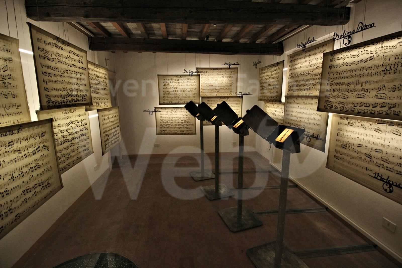 Il Museo Rossini è composto da quattro sale, un breve corridoio e una fascinosa, sebbene minuscola scala ‘biografica’, che porta al piano superiore della Casa. Il filo conduttore che accomuna gli spazi museali è la musica. Lungo un breve tratto di corridoio, il racconto biografico accompagna alla Stanza del prodigio, inaugurata già nel dicembre 2018. Qui si offre il primo gioiello della casa: l’ascolto delle Sei sonate a quattro, composte durante gli studi a Lugo. Il percorso continua al primo piano, con la Stanza della mappa: una distesa di cupole in cristallo, disposte lungo un sinuoso tavolo, disegna la grande mappa delle “geografie” di vita e lavoro del Maestro. Non appena si solleva una delle cupole, risuonano le note di una sua composizione. Di fronte, si entra nella Stanza della risonanza: una folata di parole sussurra ciò che scrittori, filosofi, musicisti e scienziati di tutto il mondo hanno detto di Rossini. Ridiscesi al piano terra, si entra nell’ultimo spazio, la Stanza della dispensa. La ben nota passione di Rossini per la cucina affiora nei titoli dei suoi piccoli “peccati di vecchiaia”, composizioni spesso ironicamente intitolate a nocciole, rapanelli, sottaceti, fichi secchi e altro. Aprendo i cassetti della dispensa, ne scaturisce, in tutt’uno con la musica di Rossini, l’interpretazione visiva che ne dà Massimo Pulini, primo artista coinvolto nell’ambizioso progetto di tradurre in immagini le prelibatezze del Maestro.