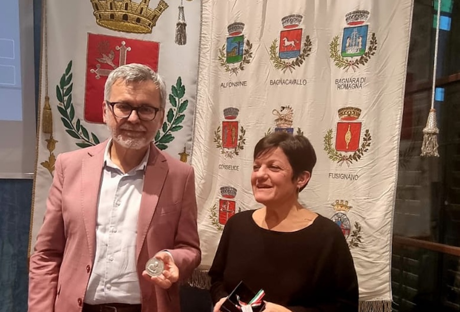 Nel corso della seduta del Consiglio comunale di giovedì 27 novembre, la sindaca di Lugo Elena Zannoni ha conferito la medaglia al merito civico «Adriano Guerrini» al dottor Marco Mordenti, segretario dei Comuni di Lugo e Fusignano, nonché segretario e direttore dell’Unione dei Comuni della Bassa Romagna. L’onorificenza, istituita all’inizio di quest’anno, viene assegnata a persone che con il loro impegno si siano particolarmente distinte nella cura e nella rigenerazione dei beni comuni o con azioni e comportamenti a favore della comunità.