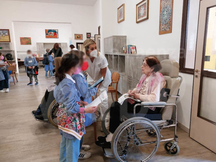 Erano presenti le tre animatrici della struttura Caterina Cavina, Raffaella Pavignani e Silvia Tabanelli assieme alla coordinatrice Greta Ghetti che ha ringraziato subito i bambini per aver mostrato interesse per gli ospiti della Cra e ha sottolineato la felicità, dopo due anni di misure cautelari causa Covid-19, di poter avere dei giovanissimi visitatori. Ha inoltre definito l’incontro «davvero emozionante».