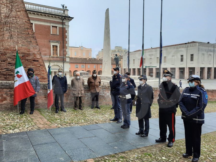 Una breve cerimonia, con la deposizione di una corona alla lapide che si trova sopra la piccola porta secondaria della Rocca Estense e che ricorda i nomi e i cognomi dei 26 lughesi deportati e sterminati dei campi di concentramento nazisti.