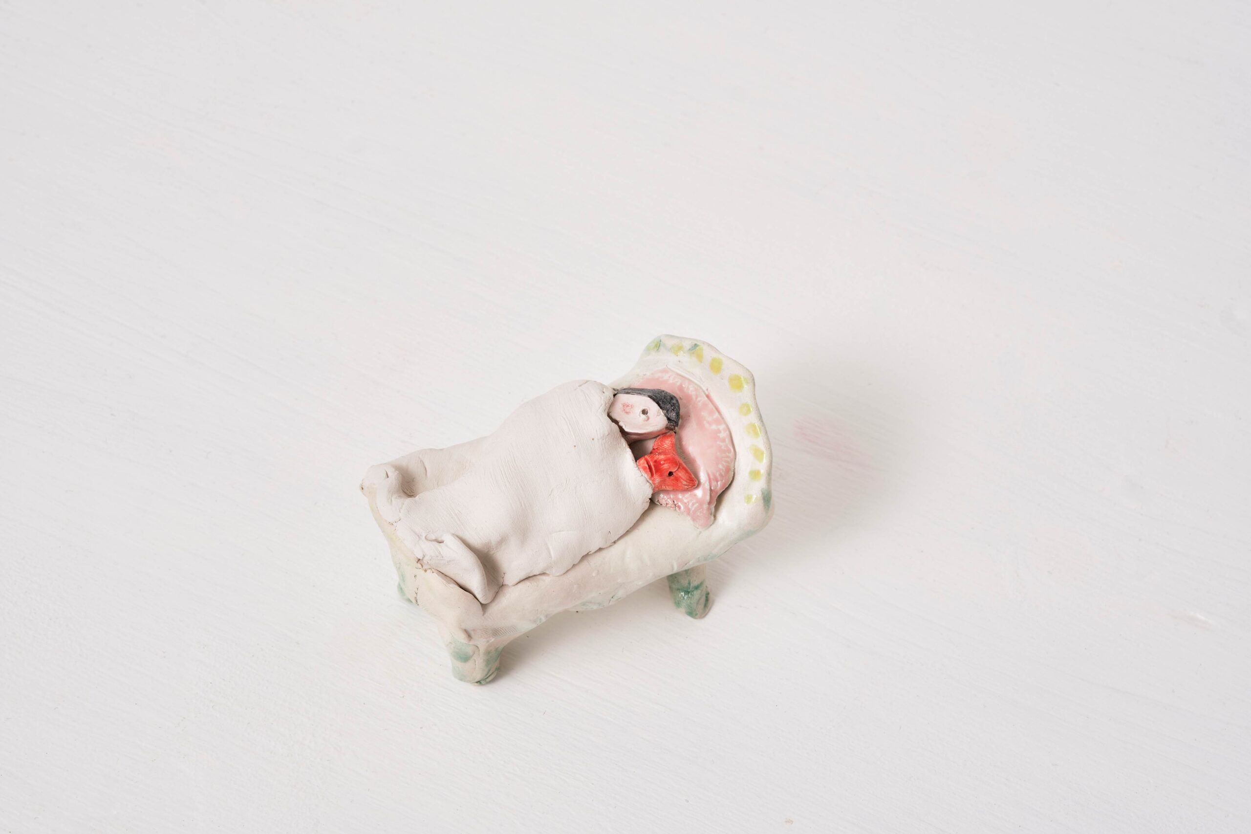 «Saturnina» è invece l’interpretazione personale di Francesca Cerfeda (Napoli, 1993) del rito dei Saturnalia, festa antica che sovverte l’ordine, sospende il tempo e apre uno spazio nuovo: simulacri, ritratti e idoli che nascono dall’introspezione e dall’immaginazione, interpretazione privata dell’antico rito dei Saturnalia che sovverte l’ordine e apre uno spazio altro.