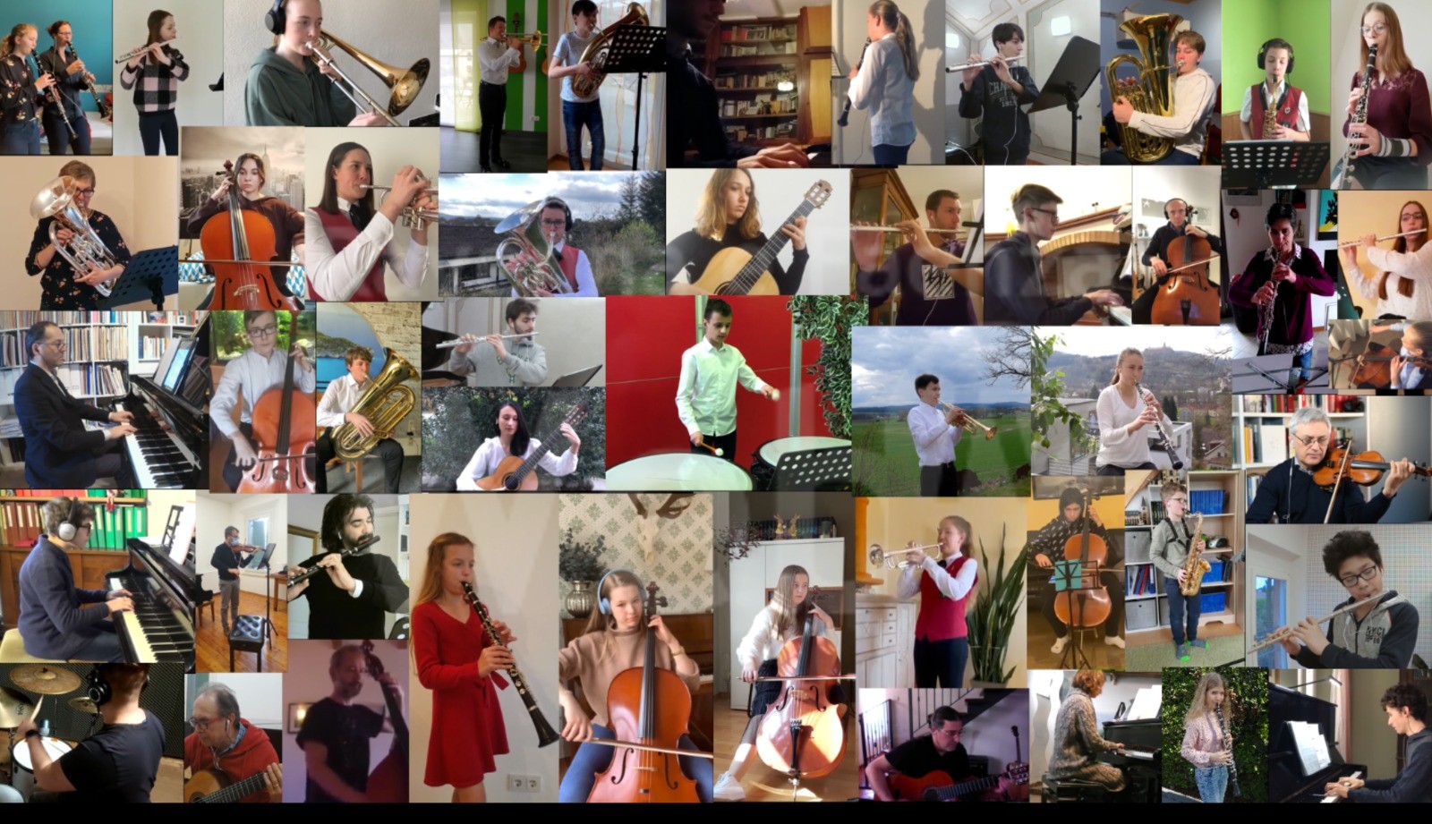 Si tratta di un montaggio video che presenterà il frutto del lavoro di oltre cento musicisti dagli otto ai settant’anni che dalle proprie case hanno voluto unirsi simbolicamente registrando l’Inno Europeo oltre ai rispettivi inni nazionali.
