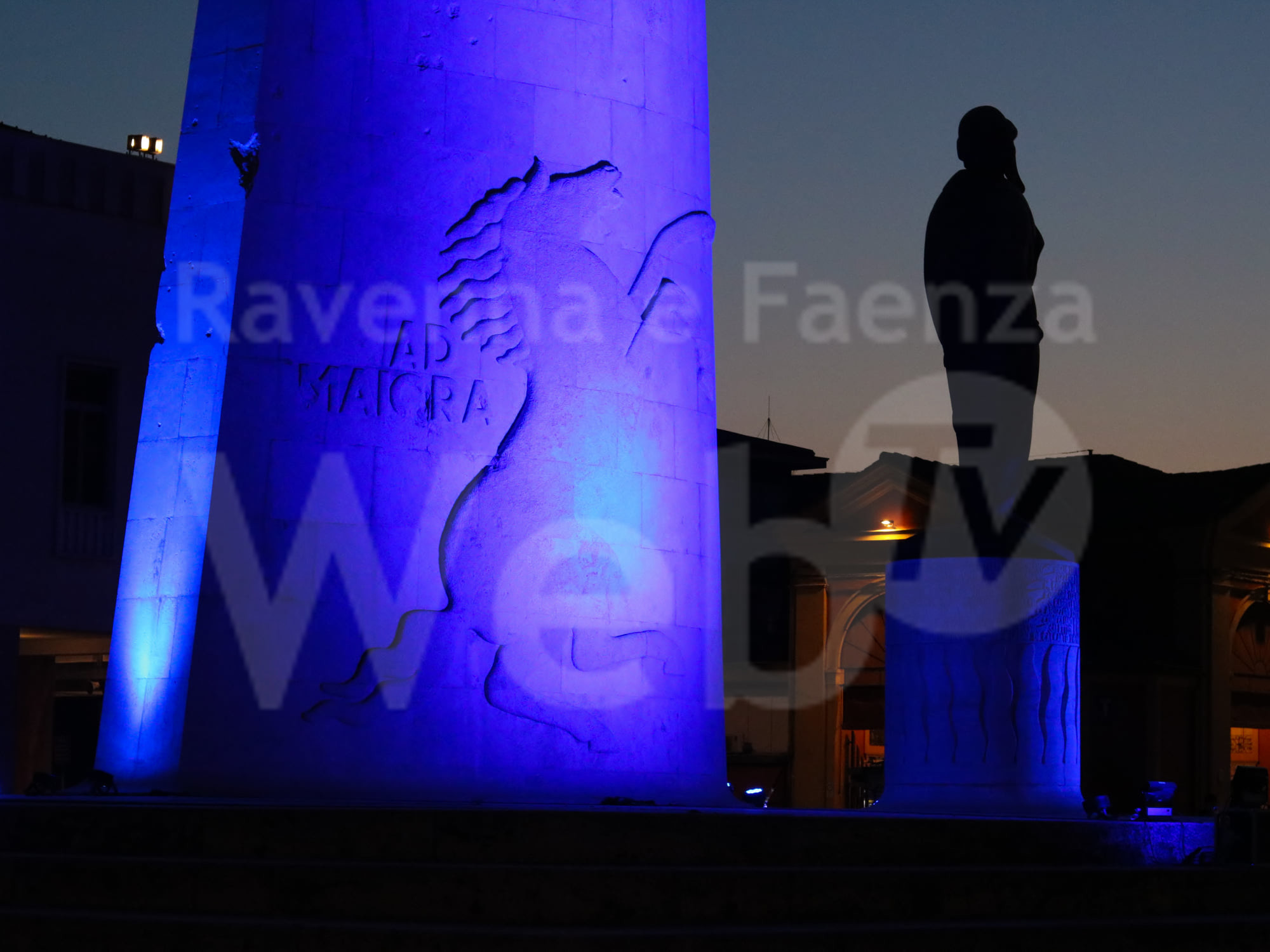 Nella serata di venerdì 2 aprile il monumento a Francesco Baracca di Lugo si è illuminato di blu in occasione della Giornata mondiale della consapevolezza sull’autismo.