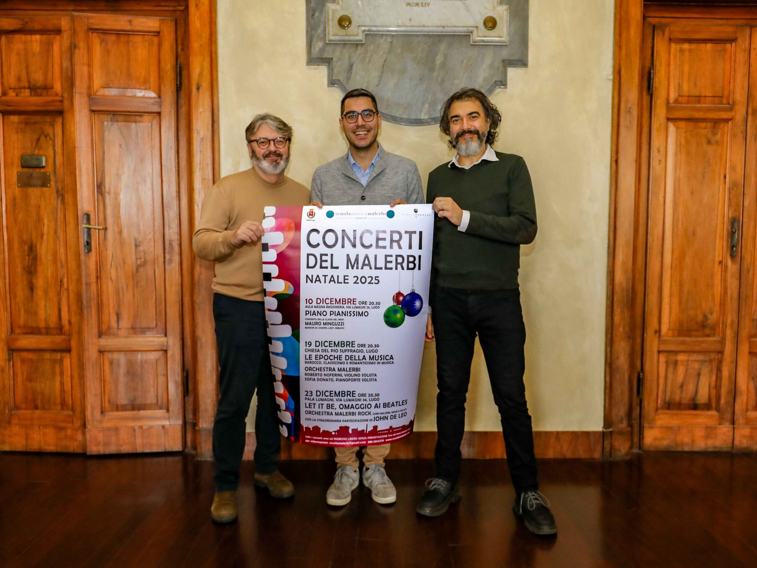 In occasione delle festività natalizie, la scuola di musica Giuseppe e Luigi Malerbi di Lugo, in collaborazione con il Comune di Lugo e la Fondazione Teatro Rossini, organizza una rassegna di quattro concerti con cui offrirà in diversi luoghi della città una panoramica dei vari generi e repertori in cui si articola la sua attività.
