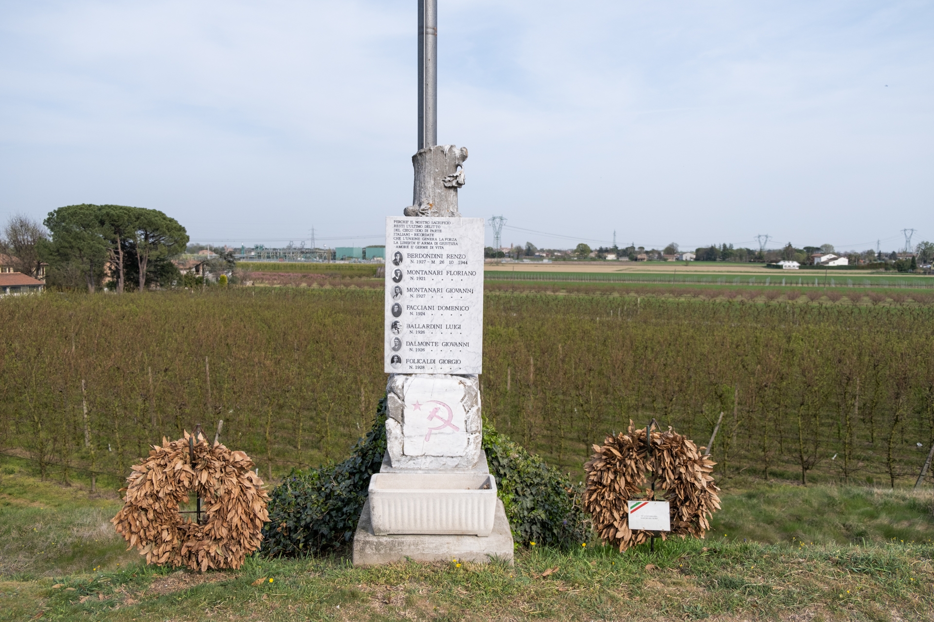 Il 20 ottobre 1944, nella zona tra Lugo e Cotignola, truppe nazifasciste organizzarono un rastrellamento per colpire un gruppo di giovani partigiani delle frazioni di Barbiano, Zagonara e del sud del lughese. Nel corso dell’operazione vengono catturati Luigi Ballardini (18 anni, di Barbiano), Renzo Berdondini (17 anni), Giovanni Dalmonte (18 anni), Domenico Facciani (20 anni), Giorgio Folicaldi (15 anni), Floriano Montanari (23 anni) e Gianni Montanari (17 anni, fratello di Floriano). Trascinati al comando della Brigata nera nella Rocca di Lugo, i sette giovani più il ventenne Carlo Landi furono interrogati e torturati selvaggiamente. Landi fu ucciso il 25 ottobre e lasciato esposto come ammonimento ai piedi della Rocca, e dove oggi è posta una lapide in sua memoria. I sette superstiti, in condizioni pietose, furono consegnati ai nazisti che, in una mattinata plumbea, li trascinano nella golena del Senio in piena. Lì, fatti scendere verso la fiumana, vengono fucilati uno alla volta e i loro corpi fatti rotolare in acqua. Il cadavere martoriato di Giorgio Folicaldi riaffiorò dalla melma il 2 dicembre 1944, quelli di Renzo Berdondini, Giovanni Dalmonte e Gianni Montanari vennero ritrovati il 30 maggio 1945 da parenti e amici volontari, che scandagliarono l’alveo del Senio fino ad Alfonsine, rischiando di incappare nelle mine lasciate dal fronte. Di Domenico Facciani, Luigi Ballardini e Floriano Montanari non si è trovata più traccia (cenni storici a cura di Gian Luigi Melandri, dell’Istituto storico della resistenza e dell’età contemporanea in Ravenna e provincia).