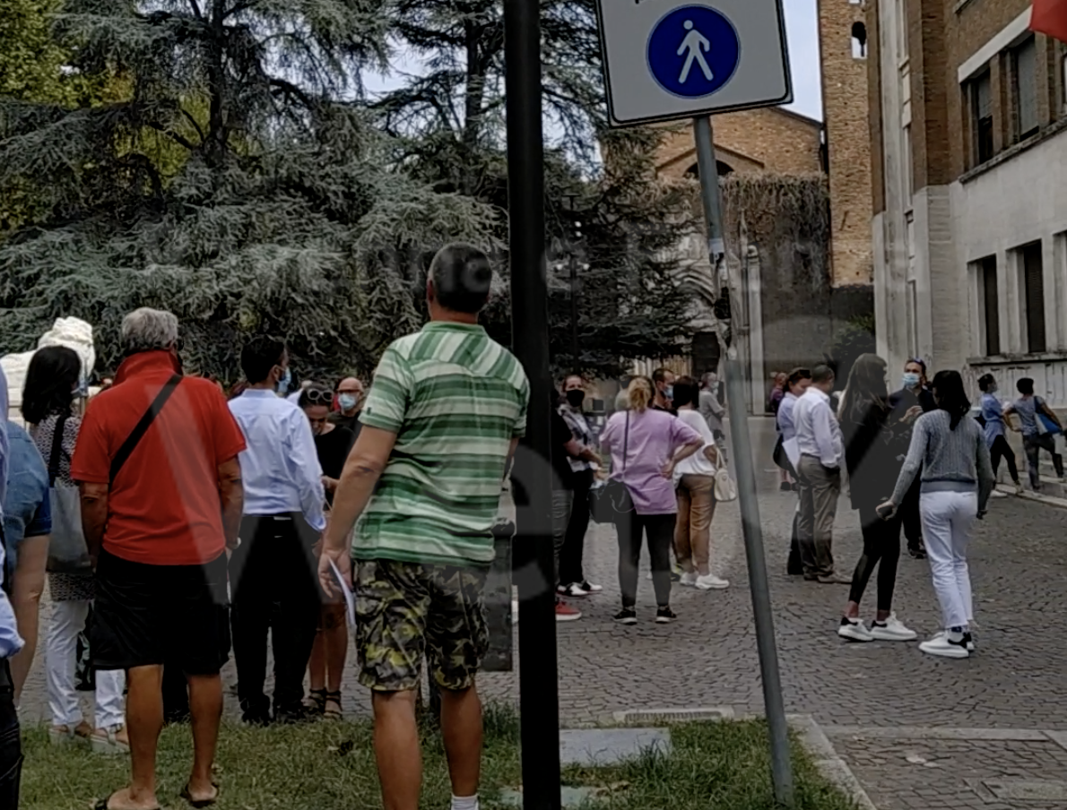 Riportiamo la segnalazione di un nostro lettore che denuncia le lunghe file di genitori che si sono formate questa mattina all’esterno del Liceo Classico Dante Alighieri per il ritiro dei libretti delle giustificazioni, necessari in caso di assenza di un alunno da scuola. Le norme per il contenimento del contagio non consentono ai genitori l’accesso negli istituti scolastici, e così si sono formate “code infinite”, come le definisce il lettore che ha contattato la redazione, fuori dalla scuola.