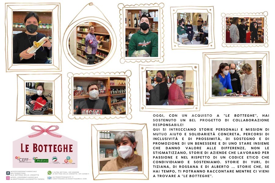 Due grandi realtà sociali del territorio Faentino, l’associazione di volontariato GRD Faenza ODV (Genitori Ragazzi con Disabilità) e la Cooperativa Sociale CEFF mettono insieme le loro “botteghe” dove normalmente lavorano persone con disabilità per aprire un Temporary Shop in via Pistocchi per tutto il periodo natalizio.