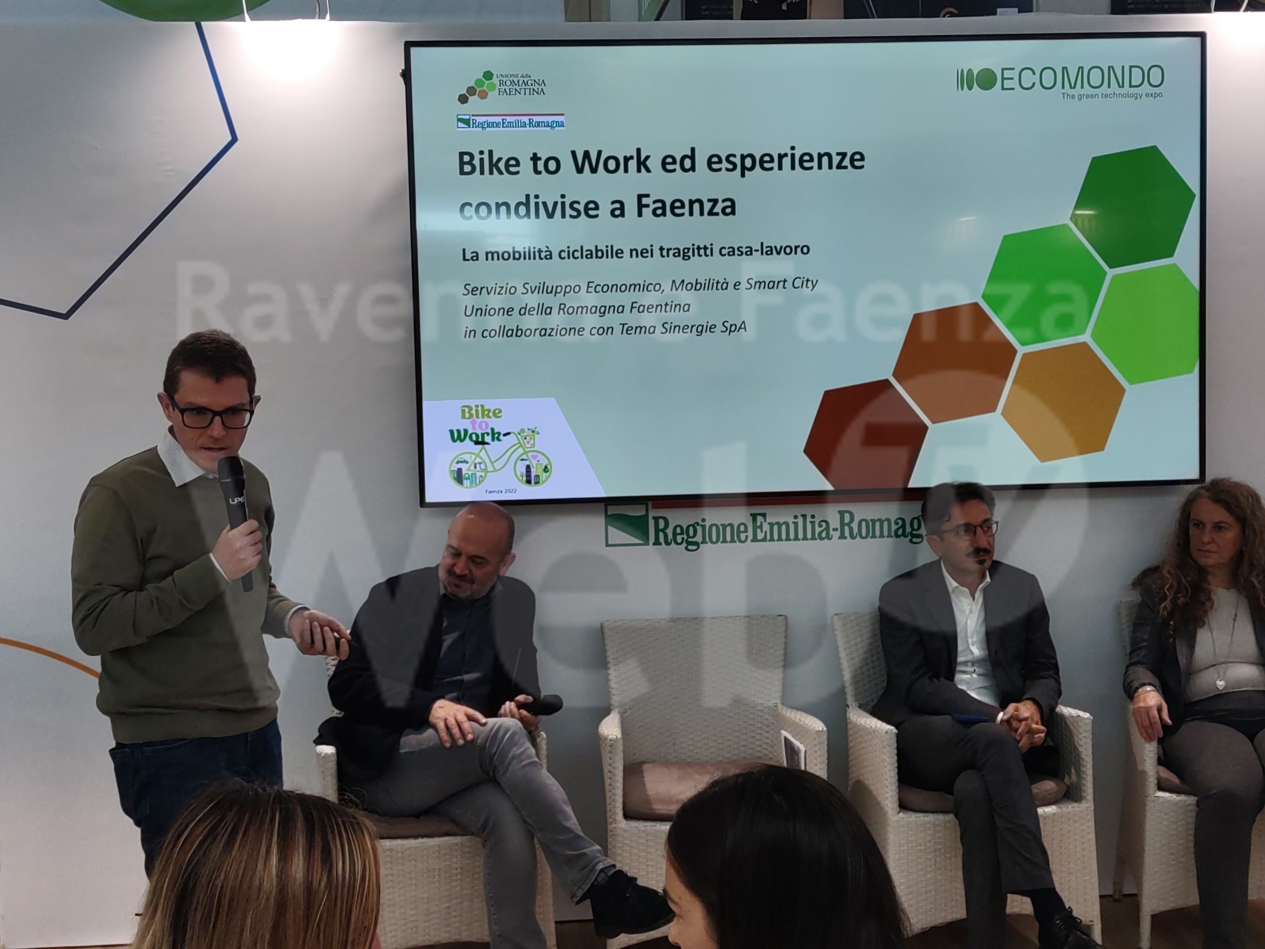 L’Unione della Romagna Faentina ha partecipato alla 26esima edizione della fiera dedicata alla transizione ecologica “Ecomondo” dove, su invito della Regione Emilia-Romagna, ha relazionato durante l’incontro “Non solo piste ciclabili” di mercoledì 8 novembre. Il Servizio Mobilità dell’Unione ha così potuto presentare l’iniziativa “Bike to Work” e le buone pratiche di Mobility Management aziendale applicate nel Comune di Faenza.