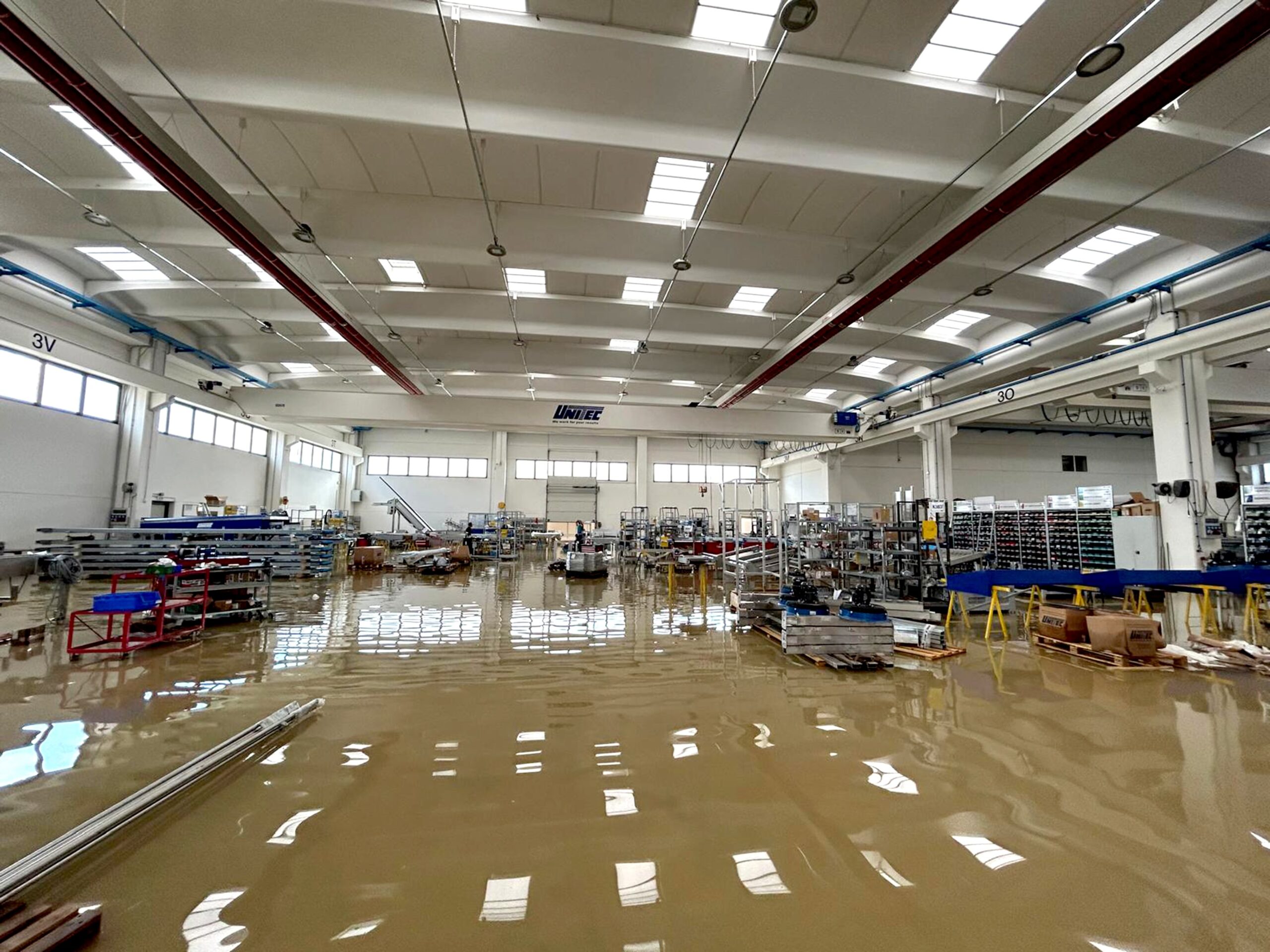 UNITEC ha sede a Lugo, fra gli epicentri dell’ultima alluvione in Romagna, dove il Senio ha rotto gli argini poco sopra, nella vicina Cotignola, a pochi km dalla sede dell’azienda, che ha così visto arrivare una marea di fanghiglia e detriti trasportati dalla furia del fiume in tutto il suo quartier generale, dove ha anche sede un Corso di Laurea in Meccatronica dell’Università di Bologna.