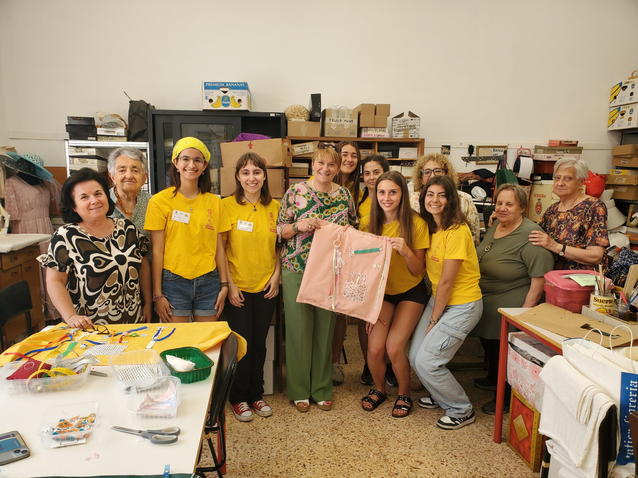 Sono all’opera per realizzarli le Magliette gialle dei due laboratori dedicati: Aurora A., Aurora C., Aurora S., Anna Carolina, Arianna, Eleonora, Elisa, Francesca, Ilaria, Maia, Nicole, Sara, coadiuvate dalle tutor Adriana, Anna, Liberata, Meri e Serena, volontarie della Banca del Tempo,.