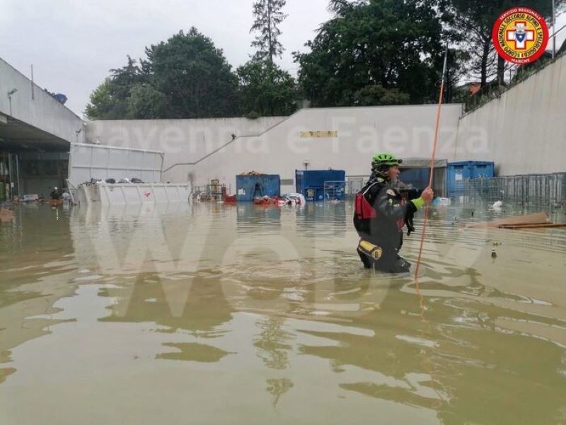 I Tecnici di Soccorso in Forra, specializzati in ambiente calamitoso acquatico, sono impegnati da questa notte nel recupero di persone bloccate all’interno delle loro abitazioni e nella ricerca dispersi, nelle province più colpite: Ravenna e Forlì-Cesena. (Ansa)