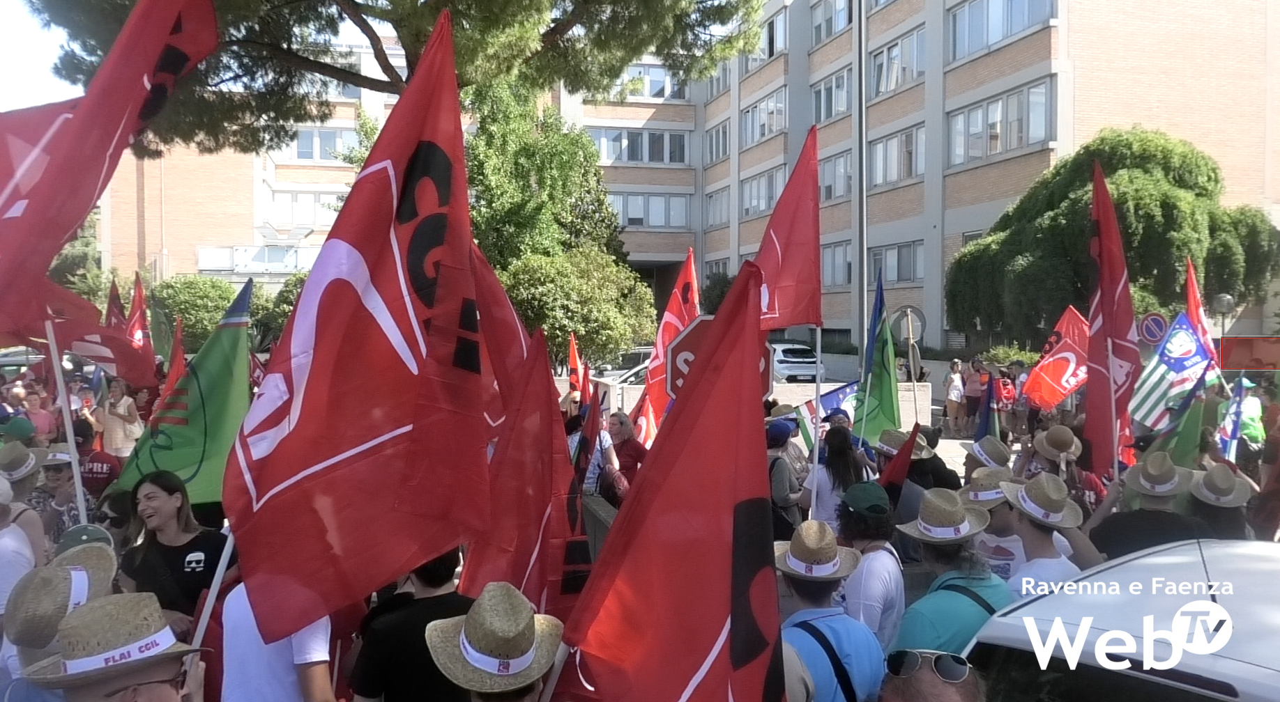 I sindacati hanno manifestato di fronte alla sede di Legacoop Romagna, per chiedere il rinnovo del contratto del comparto agricolo, dopo che le trattative dello scorso 13 giugno non sono andate a buon fine.