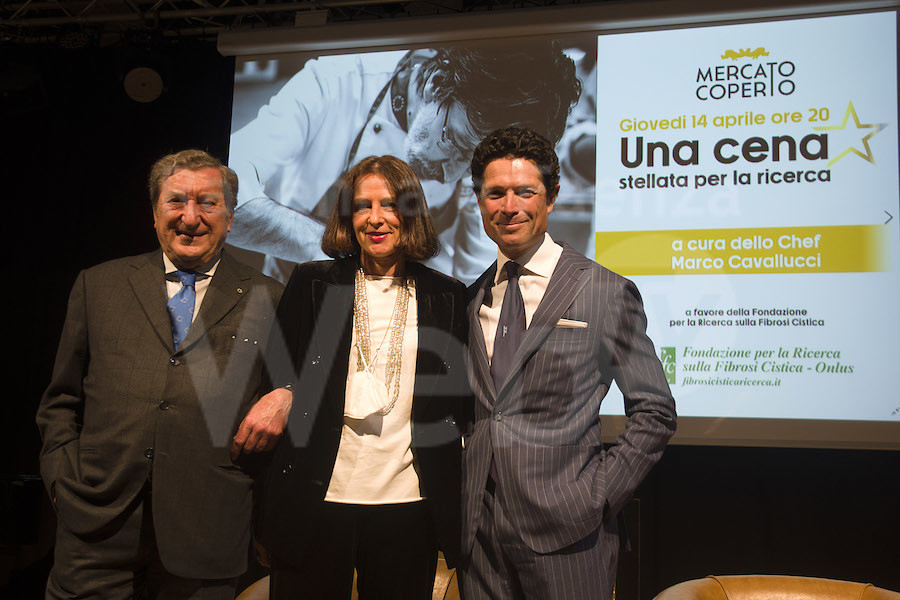 Matteo Marzotto e Loris Camprini ospiti della cena di solidarietà con raccolta fondi a favore della Fondazione Ricerca Fibrosi Cistica che si è svolta al Mercato Coperto di Ravenna. Marzotto (presidente della Fondazione ricerca fibrosi cistica) e Camprini (sostenitore da tempo della Fondazione) hanno dialogato sul volume ‘Un Milione di Chilometri in Moto’.Un centinaio le persone che hanno accolto l’invito a impegnarsi a favore della ricerca medica, tra lori numerosi Amici di Ravenna Festival.“Il Mercato Coperto è per sua natura un luogo di cultura, storia, eventi dove la solidarietà ha un ruolo di primo piano e ben volentieri abbiamo sostenuto questa serata consapevoli dello sforzo che la Fondazione ricerca fibrosi cistica fa per valorizzare i progressi della medicina in questo ambito specifico” il commento di Beatrice Bassi, amministratrice della società di gestione del Mercato Coperto di Ravenna.Lo chef Marco Cavallucci ha preparato una cena che ha riproposto alcuni piatti tipici che realizzava quando guidava la brigata del ristorante La Frasca,c ome le Caramelle di ricotta cremosa Officine Gastronomiche Spadoni e raviggiolo, con crema di peperone dolce, Rosette di agnello tartufate con gratin di patate e anelli di cipolla dorati, Spuma di formaggio bianco, frutto della passione e carpaccio di ananas profumato.