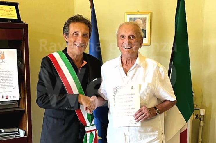 Il sindaco Daniele Bassi ha ricevuto in municipio a Massa Lombarda l’89 enne Pasquale Preti per consegnargli a nome dell’intera città una pergamena celebrativa.