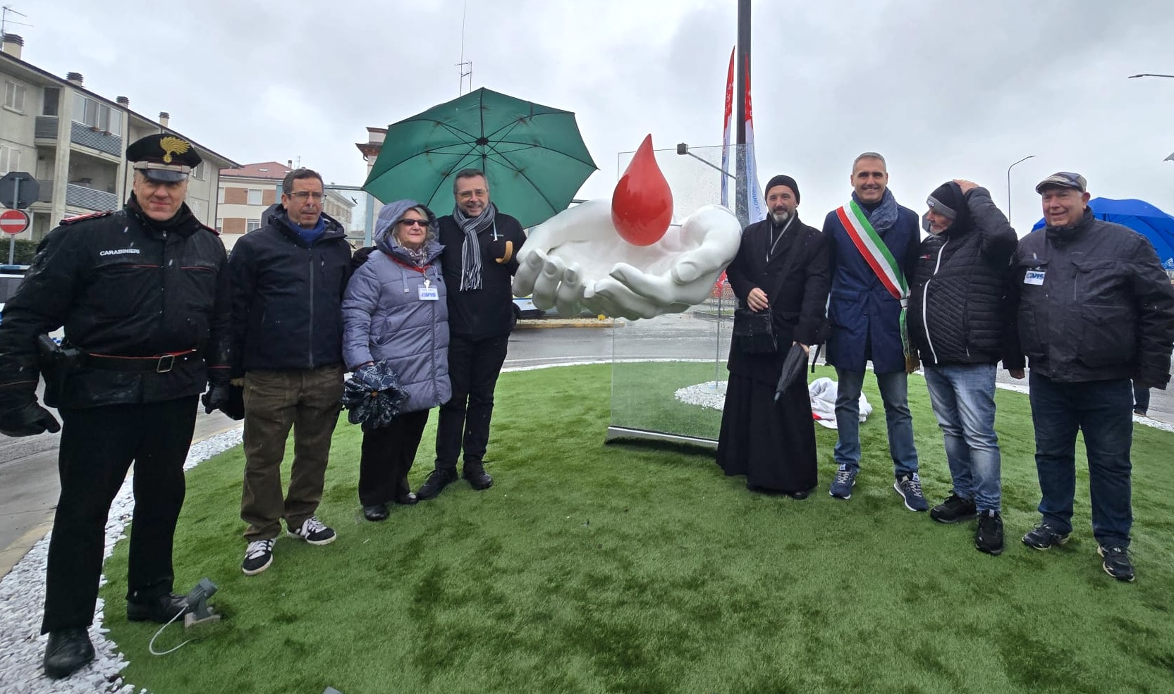 È stato inaugurato questa mattina, al centro della rotonda di via Repubblica, il monumento AVIS dedicato al valore del dono del sangue, un’opera simbolica che rappresenta due mani che accolgono una goccia di sangue: gesto semplice, essenziale, ma capace di richiamare il significato profondo della solidarietà e della cura verso gli altri.