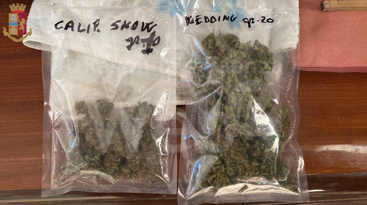 Stoccati all’interno di alcuni scatoloni sono stati rinvenuti 215 confezioni di varie grammature, pronte per le cessioni, con indicata la varietà di marijuana.