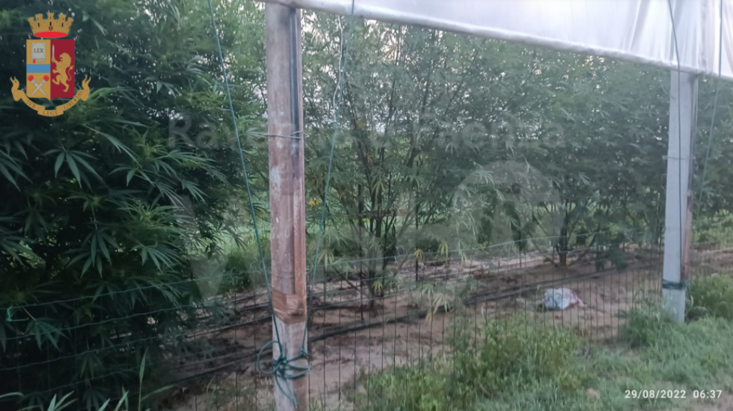Pertanto, nella mattinata del 29 agosto u.s., gli operatori di polizia hanno effettuato un sopralluogo accertando che all’interno di una serra vi erano cinque piante di marijuana alte circa 3 metri, accuratamente coltivate e con impianto di irrigazione.