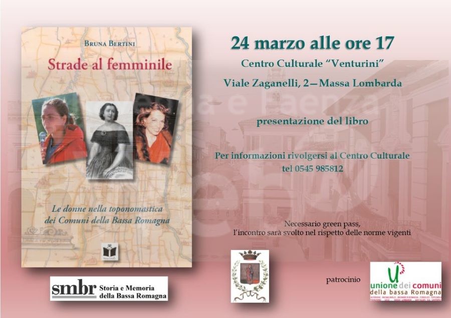 A Massa Lombarda si chiudono gli eventi dedicati alla Giornata della Donna con Bruna Bertini. Giovedì 24 marzo alle 17, presso il centro Culturale Venturini, la scrittrice presenterà “Strade a femminile”, libro incentrato sulla toponomastica femminile nei comuni della Bassa Romagna.