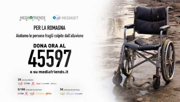I fondi raccolti da Mediafriends non saranno quindi destinati in generale alle aree in cui la solidarietà pubblica e privata garantirà aiuti cospicui, ma finiranno a cinque progetti specifici rivolti alle persone più fragili curati da Anffas Faenza, Casa della Carita’ Lugo, Comunita’ Montepaolo, Fondazione opera don Baronio onlus Cesena e genitori ragazzi disabili di cui sarà data ampia rendicontazione. La campagna Mediafriends durerà fino al 22 luglio, sarà diffusa con uno spot e sarà sostenuta da tutto il sistema di comunicazione Mediaset. Si potranno effettuare donazioni tramite bonifico bancario al codice Iban IT92R0103020600000055555575, oppure donare online collegandosi alla pagina www.mediafriends.it o attraverso l’SMS solidale 45597. L’iniziativa vedrà anche, a metà luglio, la “Partita del cuore” con la Nazionale Cantanti in diretta su Italia1, i cui ricavi andranno interamente a favore della campagna di raccolta fondi Mediafriends. La data del match sarà comunicata quanto prima.