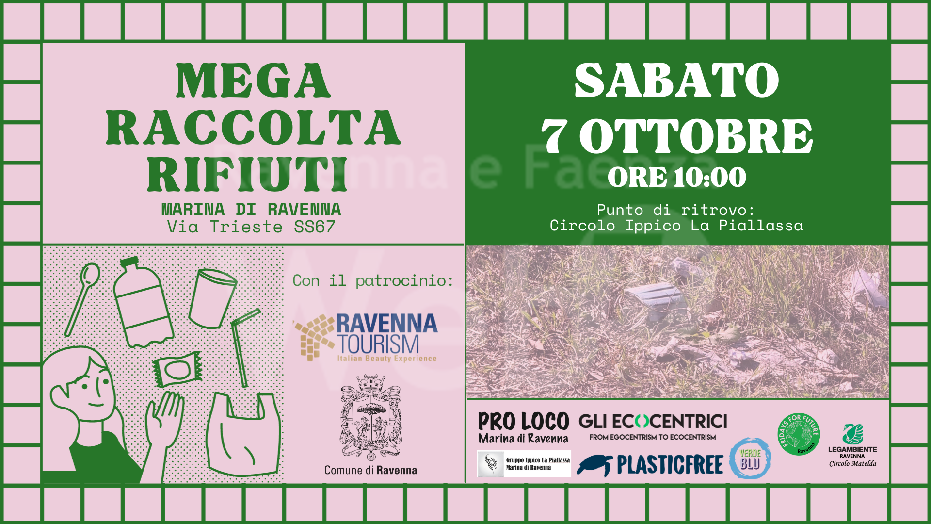 Infine, La Proloco Marina di Ravenna e il Circolo Ippico La Piallassa offriranno ai volontari anche un delizioso PRANZO VEGETARIANO, rendendo così questo evento non solo un’opportunità per pulire il nostro ambiente, ma anche per condividere momenti conviviali.