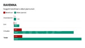 Questo il dettaglio della distribuzione sul territorio: circa 15mila alberi sono andati a oltre 1.500 beneficiari della provincia di Bologna, 5.400 a 800 destinatari sul territorio di Ferrara, più di 17mila piante a 2200 utenti di Modena e provincia. E ancora 48mila alberi sono stati piantati da 5.000 tra enti, cittadini e associazioni in provincia di Parma, in quella di Piacenza circa 7500 specie per circa 850 beneficiari, a Ravenna 4.100 per più di 500 destinatari, 36.135 piante a 4mila beneficiari della provincia di Reggio Emilia, aRimini gli alberi piantati sono più di 3.800 per 304 destinatari e quasi 14mila sono le piante ritirate da 1.387 beneficiari nella provincia di Forlì-Cesena.