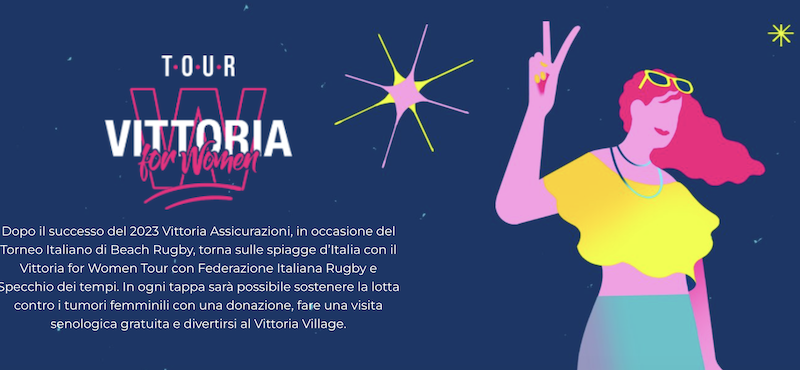Il 22 e il 23 giugno Milano Marittima ospiterà, presso l’arenile della Base logistica dell’Esercito Italiano, la tappa inaugurale della seconda edizione del “Vittoria for Women Tour”, il viaggio itinerante realizzato da Vittoria Assicurazioni in collaborazione con la Fondazione Specchio dei tempi e la Federazione Italiana Rugby (FIR) per sensibilizzare l’opinione pubblica sul tema della prevenzione delle malattie oncologiche femminili.