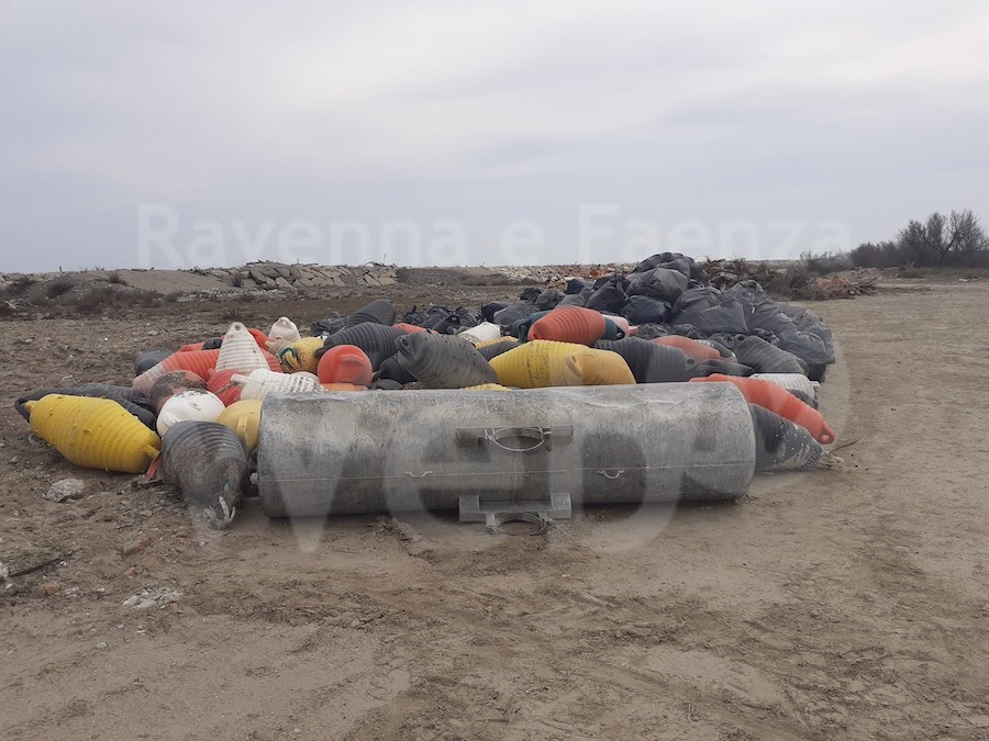 Nel periodo dal 7 al 14 marzo, per non interferire con la nidificazione dell’avifauna, con il prezioso concorso del personale del Reparto Carabinieri per la Biodiversità Nucleo di Casal Borsetti, si sono raccolte oltre quattro tonnellate (4.200 kg) di rifiuti tra: galleggianti per maricoltura, bombole di gpl, ruote e pneumatici di automobili e di autocarri, “calze” in plastica utilizzate negli allevamenti dei mitili, una boa metallica per ormeggi, numerose bottiglie di plastica, polistirolo di cassette per il pesce, vetro, un televisore, un arto artificiale ed ingombranti vari. Novità di quest’anno, è stata quella del coinvolgimento, in una giornata denominata 1^ Giornata Ecologica, di Volontari di alcune Associazioni ambientaliste quali: WWF e Plastic Free, che insieme ad altrettanti volenterosi militari, hanno raccolto in poche ore un ingente quantità di rifiuti. Tale collaborazione conferma la vocazione del Poligono, ad essere realtà ben radicata ed integrata nel contesto del territorio ravennate.