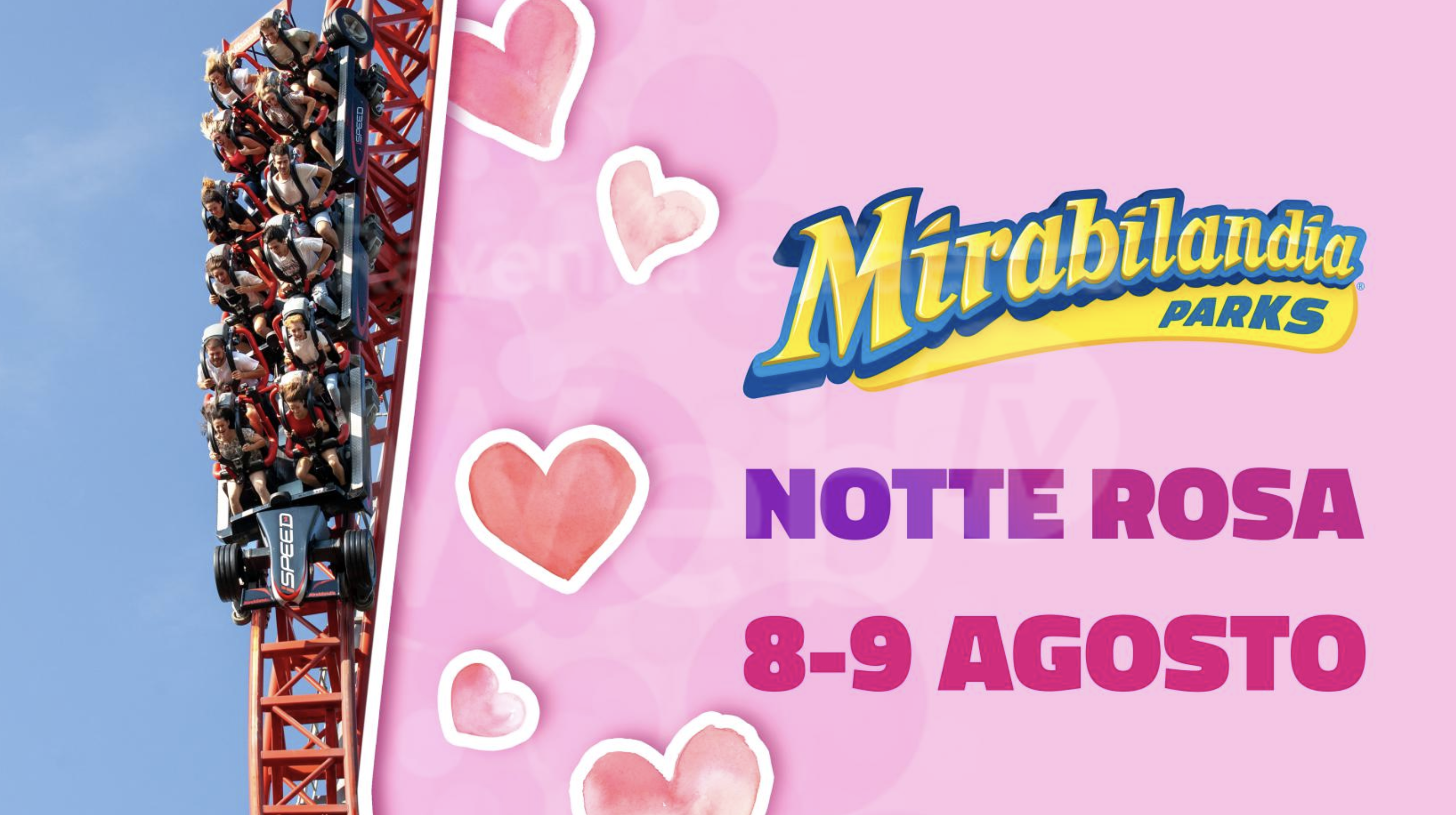 Il Capodanno dell’estate torna anche quest’anno. La riviera romagnola si colorerà di rosa per una settimana, dal 3 al 9 agosto, con eventi, musica e tanto divertimento per tutti. Anche Mirabilandia, il parco divertimenti più grande d’Italia, partecipa all’iniziativa con un’offerta da non perdere: sabato 8 e domenica 9 agosto l’ingresso dalle ore 17 è al prezzo promozionale di €9,90. Un’altra occasione speciale in cui grandi e piccini potranno godere del divertimento proposto dalle tante attrazioni presenti e dagli spettacoli in programma. Con le prime luci della sera sarà ancora più suggestivo l’immancabile appuntamento con “Hot Wheels City: la nuova sfida“, lo stunt show più acclamato d’Europa. Al Pepsi Theatre va in scena il nuovissimo show“Il Mago di Oz“, che racconta il viaggio di quattro amici verso la magica Città di Smeraldo per esaudire il proprio desiderio. Un giro sulla ruota panoramica Eurowheel regalerà una vista da 90 metri di altezza che nelle giornate più limpide spazia dagli Appennini al Mare Adriatico, fino a San Marino. Per gli amanti della velocità da monoposto di Formula 1 imperdibile un giro su iSpeed. Loop 360 gradi e un salto di 50 metri per Katun, l’inverted coaster numero uno in Europa. E per gli appassionati delle due ruote di tutte le età, irrinunciabile una vista alla nuova area Ducati World.