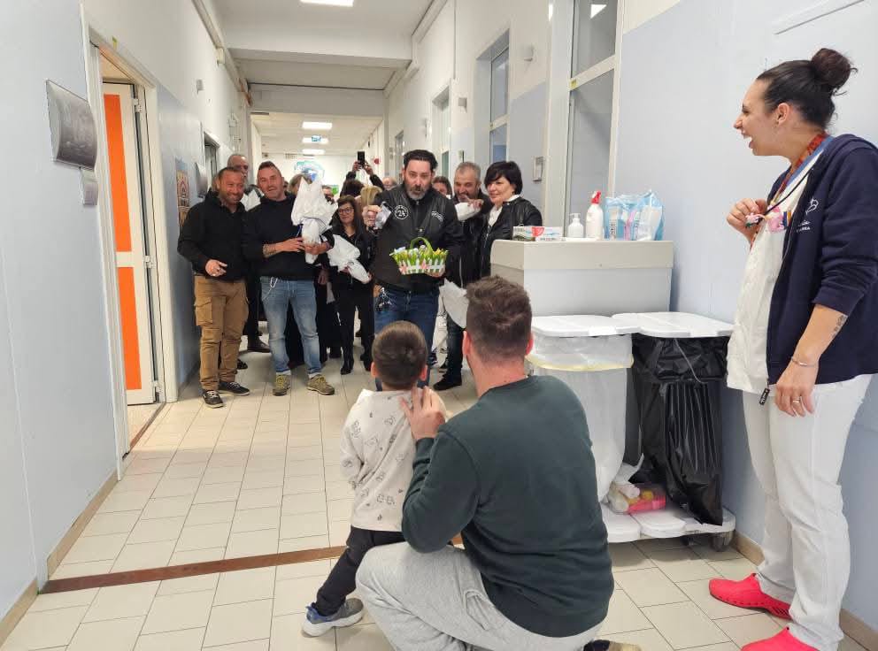 Nella giornata di ieri, domenica 13 aprile, il vicesindaco di Faenza Andrea Fabbri, ha partecipato, in rappresentanza dell’amministrazione comunale, alla “Missione Sorriso in Moto”, iniziativa organizzata dall’associazione Motor Biker Birrata di Faenza, con la partecipazione dei motociclisti Anime Ribelli di Forlì e Black Side di Ravenna. Circa 50 motociclette hanno portato un momento di gioia e solidarietà ai bambini ricoverati nel reparto di Pediatria dell’Ospedale Santa Maria delle Croci di Ravenna. Durante l’incontro, i motociclisti, scortati dalla Polizia Stradale, hanno consegnato ai piccoli pazienti uova di Pasqua personalizzate e diversi giochi, destinati sia all’allestimento della sala giochi del reparto che come dono diretto ai bambini. All’arrivo in ospedale la delegazione, assieme al vicesindaco di Faenza, a testimonianza del sostegno della comunità faentina all’iniziativa, sono stati accolti dal personale dell’Unità Operativa di Pediatria.