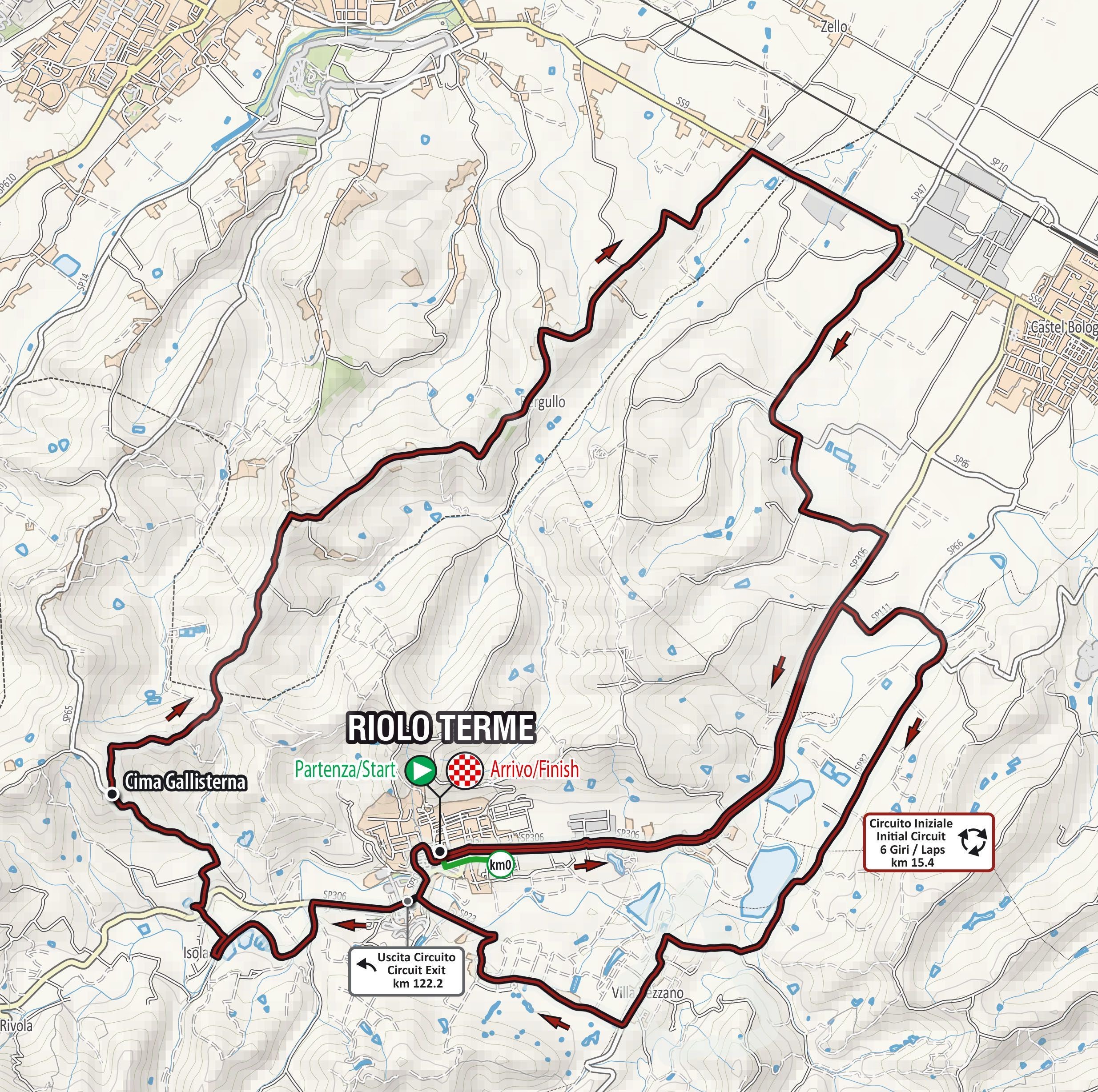 Tra le 12:45 e le 16:45, sono sottoposte a limitazione della circolazione e a divieto di transito le strade: SP 306 (via Casolana – via Bologna) tra l’intersezione con la SP 111 via Camerini (nel comune di Castel Bolognese) e il centro abitato di Riolo Terme; SP 111 (via Camerini); SP 66 (via Tebano) tra l’intersezione con la SP 82 e la SP 111 (via Camerini); SP 82 tra l’intersezione con la SP 23 (in località Villa Vezzano) e la SP 66 (via Tebano nel comune di Faenza); SP 23 (via Limisano) tra il centro abitato di Riolo Terme e la SP 82 (via Trieste in località Villa Vezzano). Nello stesso arco temporale, anche il centro abitato di Riolo Terme è interessato dalle stesse limitazioni: via Limisano SP 23, via Firenze, via Don Giovanni Costa, piazza Giovanni Da Riolo, corso Matteotti, piazzale Marconi, via Bologna. Vigono i divieti anche per il centro abitato (via Trieste) di Villa Vezzano (fraz. di Brisighella).