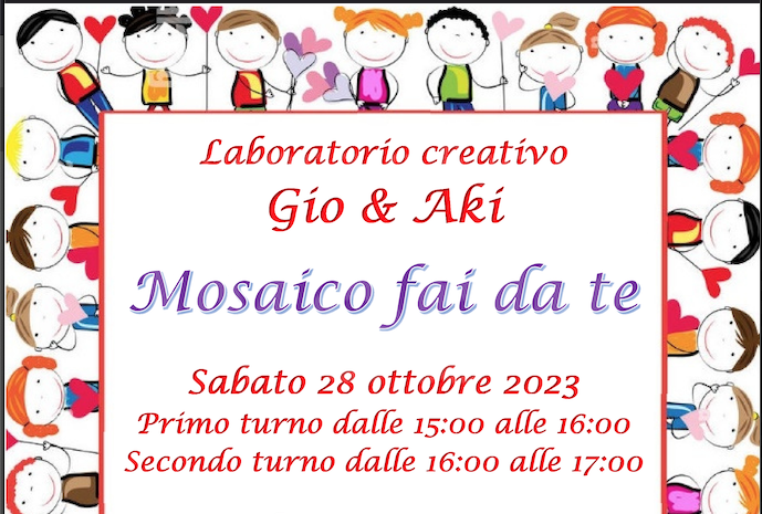 Il prossimo laboratorio GIO&AKI si terrà sabato 28 ottobre 2023 a partire dalle ore 15:00 a Pilastro, in via Sabbionara 1, presso il Centro Culturale.