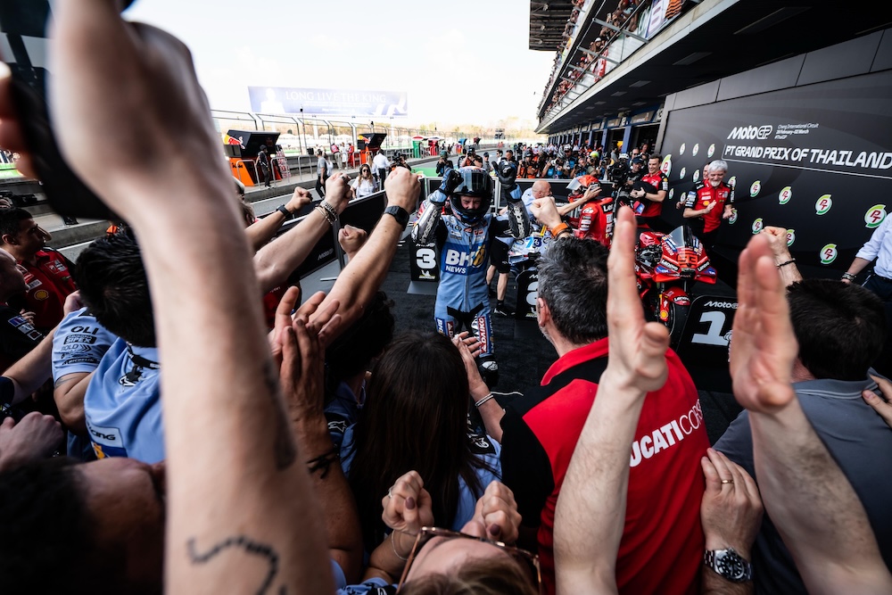 “È stato un gran fine settimana. Oggi abbiamo dato tutto ed è arrivato un ottimo risultato, sapevamo di poter ripetere la gara di ieri, ma su 26 giri non era comunque scontato. Lasciamo la Thailandia con tanti punti e la consapevolezza di essere forti. Marc e Pecco hanno qualcosa in più ma lavoriamo per stare con loro ad ogni gara, qui ci siamo riusciti e dobbiamo essere molto soddisfatti.”.